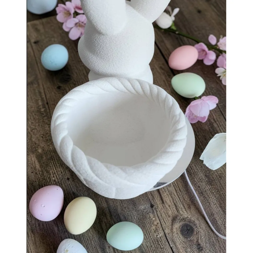 Bringe mit diesem charmanten, minimalistischen Osterhasen moderne Gemütlichkeit in dein Zuhause! Dieser XXL-Hase ist nicht nur eine niedliche Dekofigur, sondern trägt auch ein praktisches geflochtenes Körbchen auf dem Rücken.
