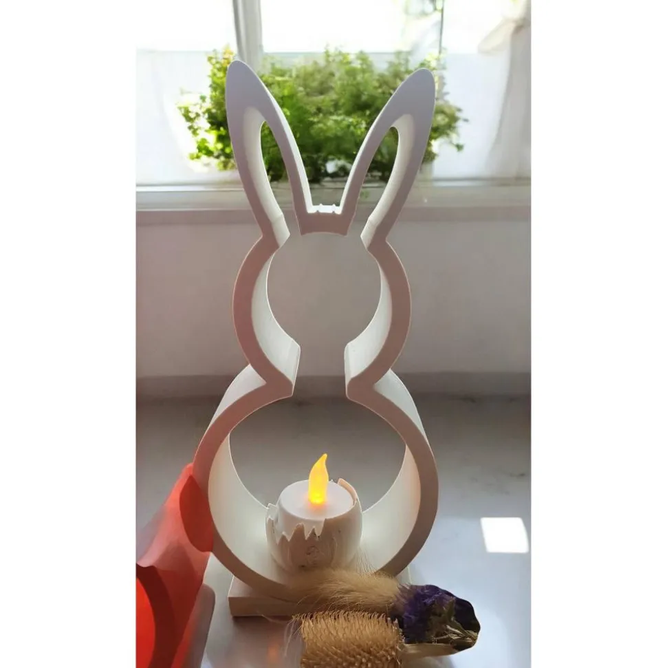 Osterhase mit LED Teelichthalter – die perfekte, nachhaltige Deko für dein Osterfest! Genieße auch zu Ostern gemütlichen Kerzenschein, denn dieser Teelichthalter ist ausschließlich für LED-Kerzen geeignet. Die Maße betragen 22 cm Höhe und 11 cm Breite, ideal für jeden Tisch oder das Fensterbrett.