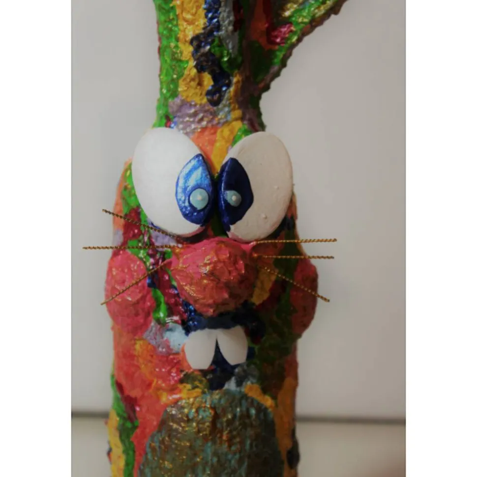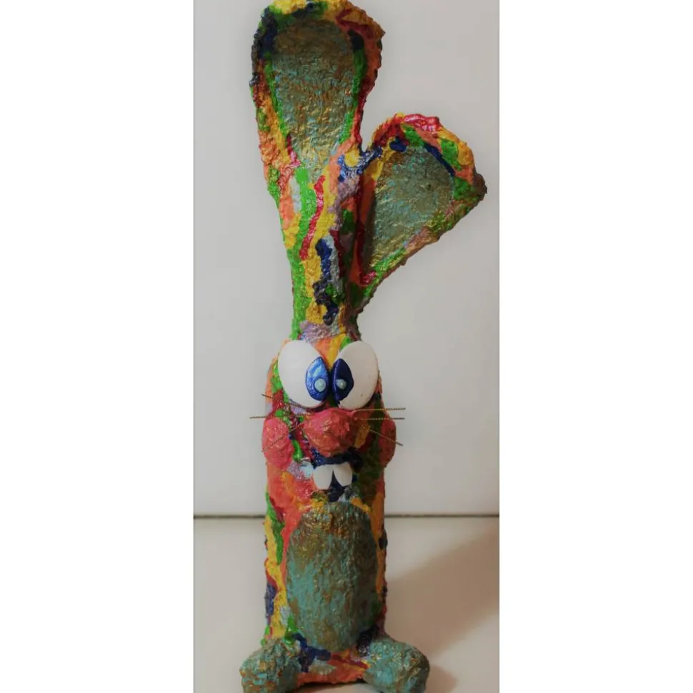 Künstlerfigur der etwas anderen Art aus upgecycelten Materialien, wie Milchtütenpapier, Plastikdeckeln, etc. !