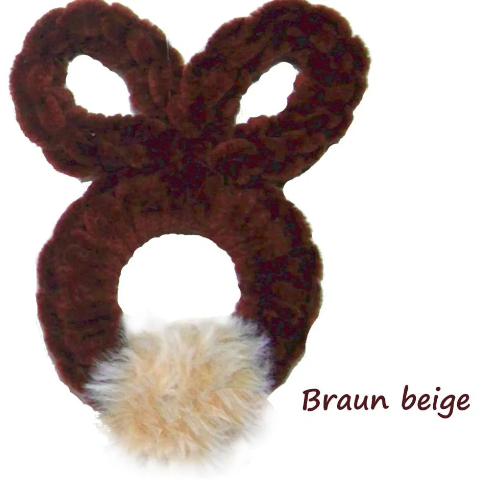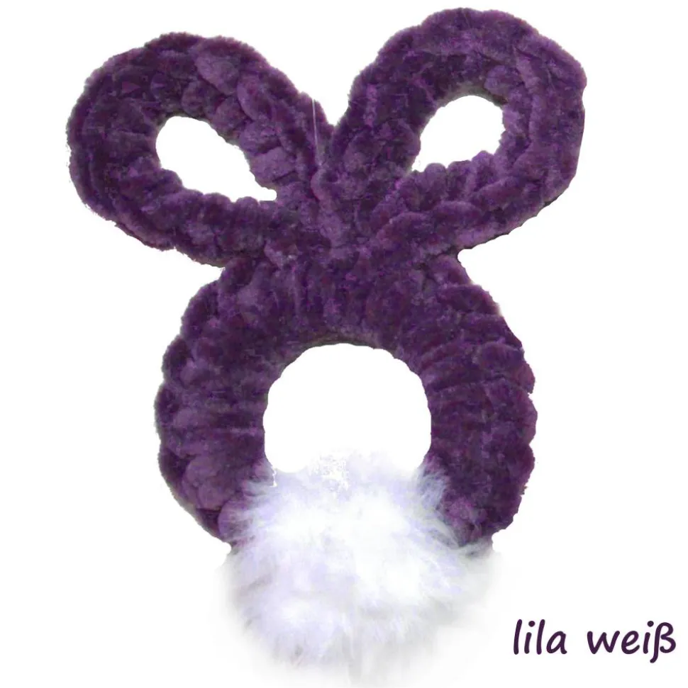 Sie können zwischen verschiedenen Wunschfarben wählen: braun beige, lila weiß oder hellgrau weiß. Die dicke Wolle ist besonders zart und flauschig, sodass jeder Hase angenehm weich wirkt.