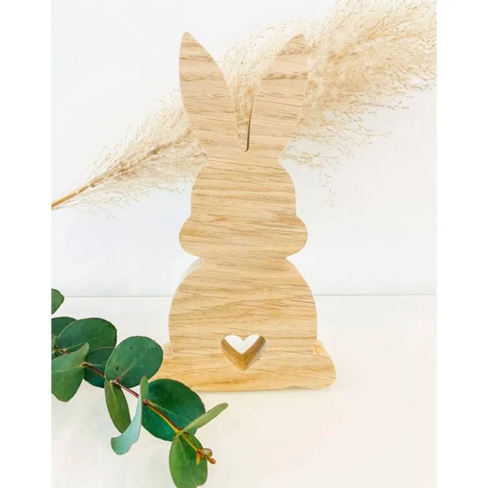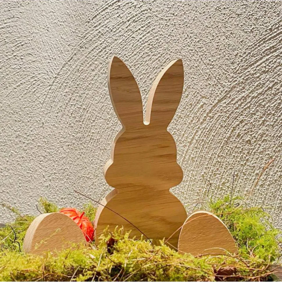 Wir fertigen unsere Hasen aus natürlichem, massivem und unbehandeltem Eichenholz und wird zum Abschluss durch uns von Hand geschliffen. Jeder einzelne wird durch die natürliche Maserung und Struktur des Naturwerkstoffes zu einem Unikat und damit etwas ganz besonderem.