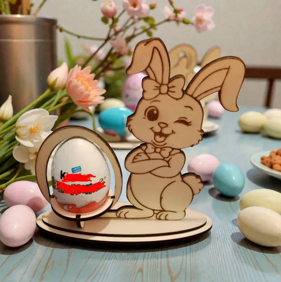 Osterhasen aus Holz als Eierhalter