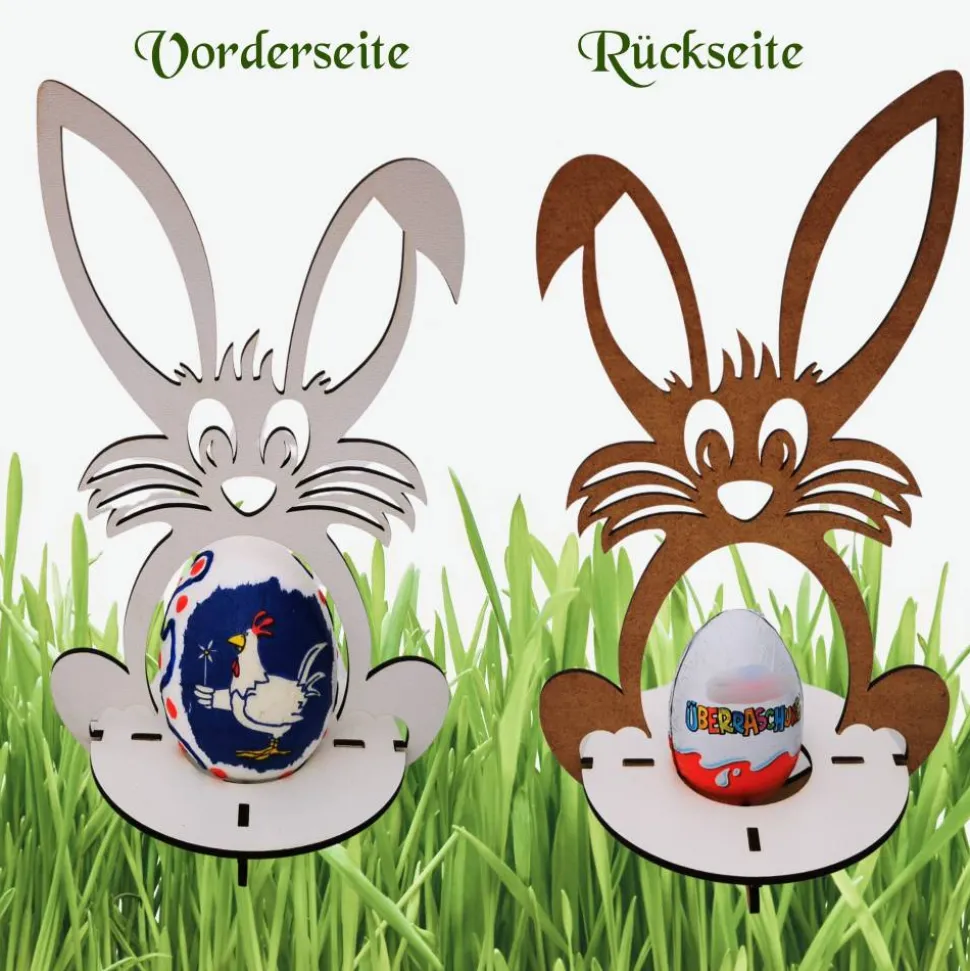 Osterhasen aus Holz mit Halterung für große Ü-Eier oder bemalte Eier