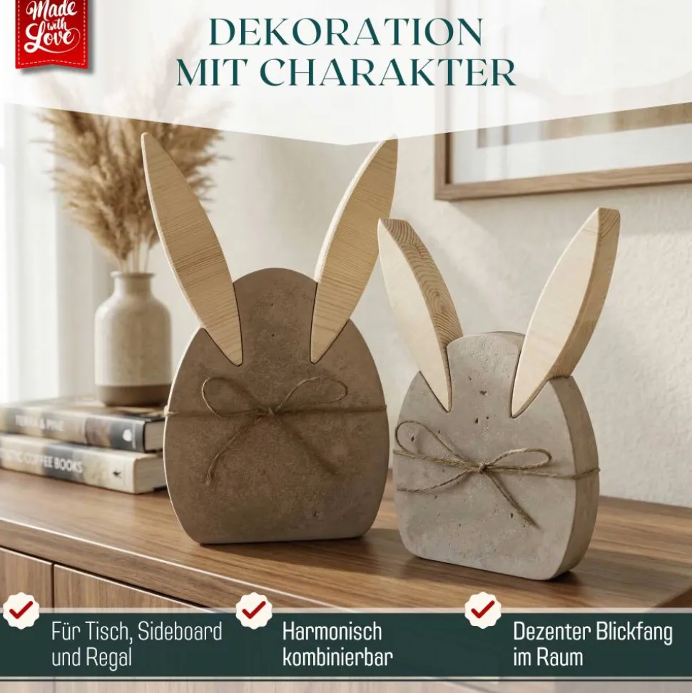 Die Hasen setzen einen dekorativen Blickfang und bringen eine warme, einladende Note in dein Zuhause.