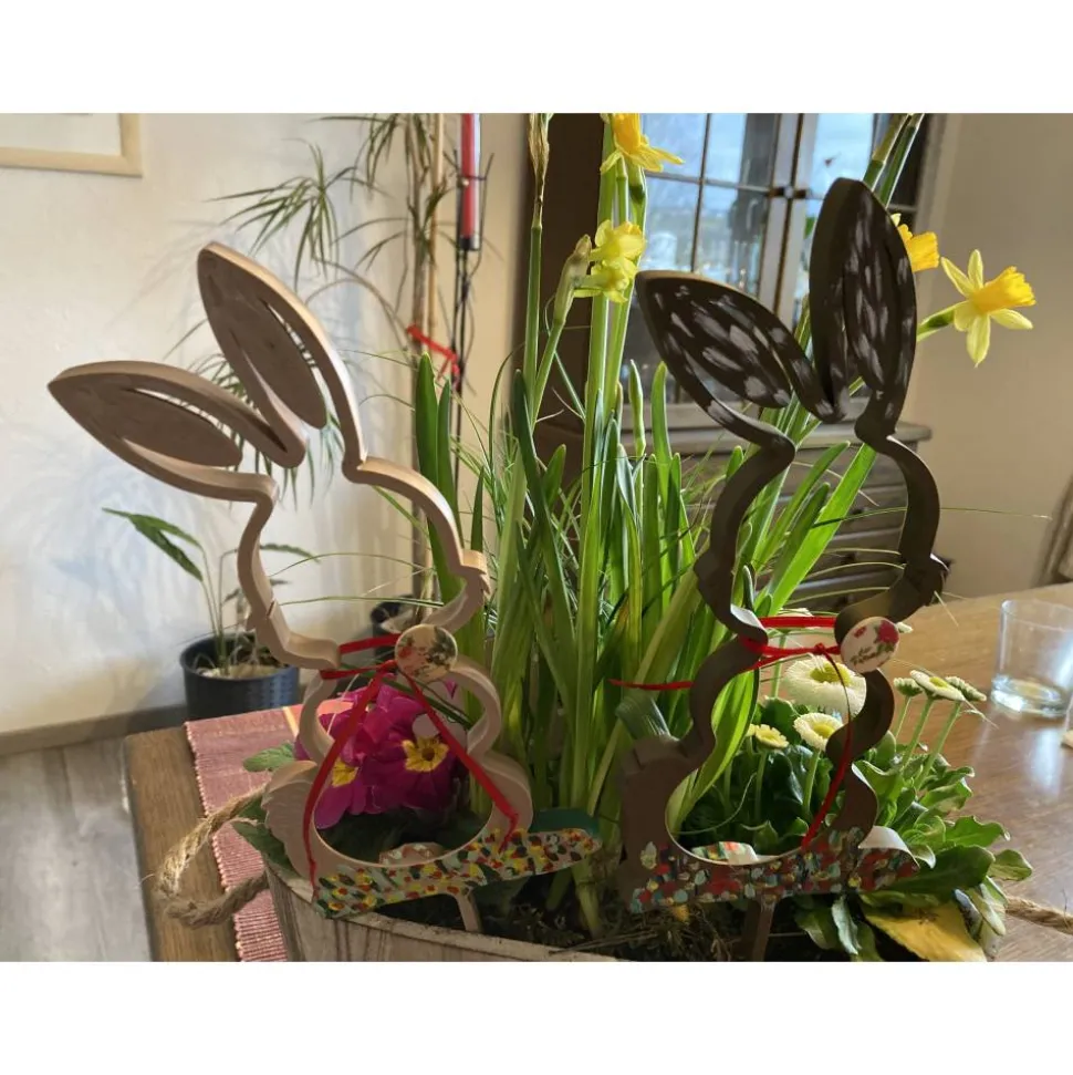 Osterhasen – Deko-Stecker, Pflanzenstecker mit Hasenmotiv, Verzierte Osterhasen-Stecker