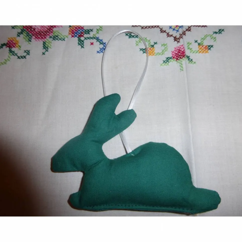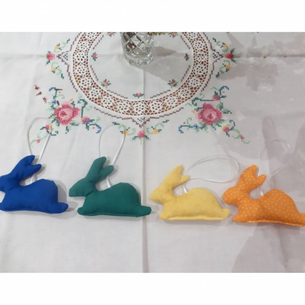 Die Osterhasen sind mit Füllwatte ausgestopft und mit Satinbändchen versehen.