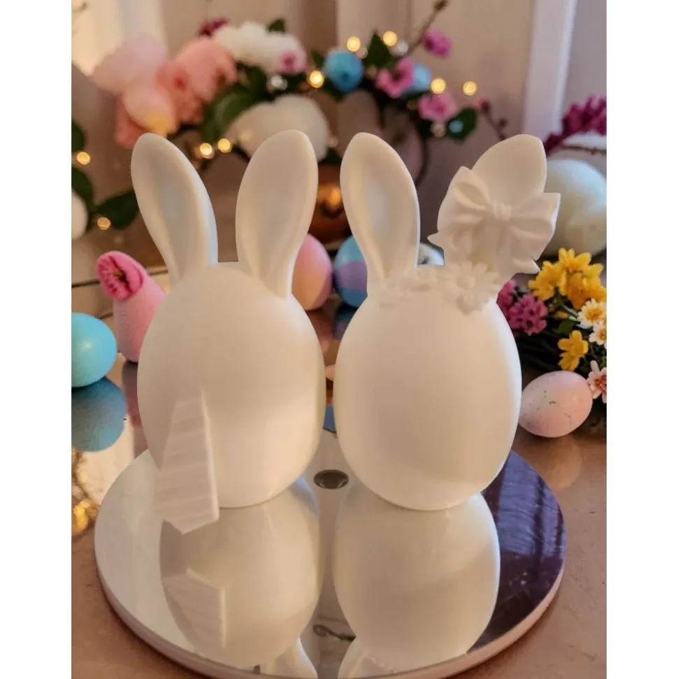 Diese stilvollen Figuren vereinen die klassische Form eines Ostereis mit niedlichen Hasendetails. Ob als elegantes Einzelstück oder als harmonisches Paar – diese Hasen sind der Hingucker in deinem Osterkörbchen oder auf der Festtafel.