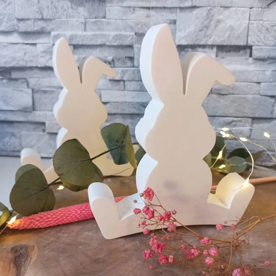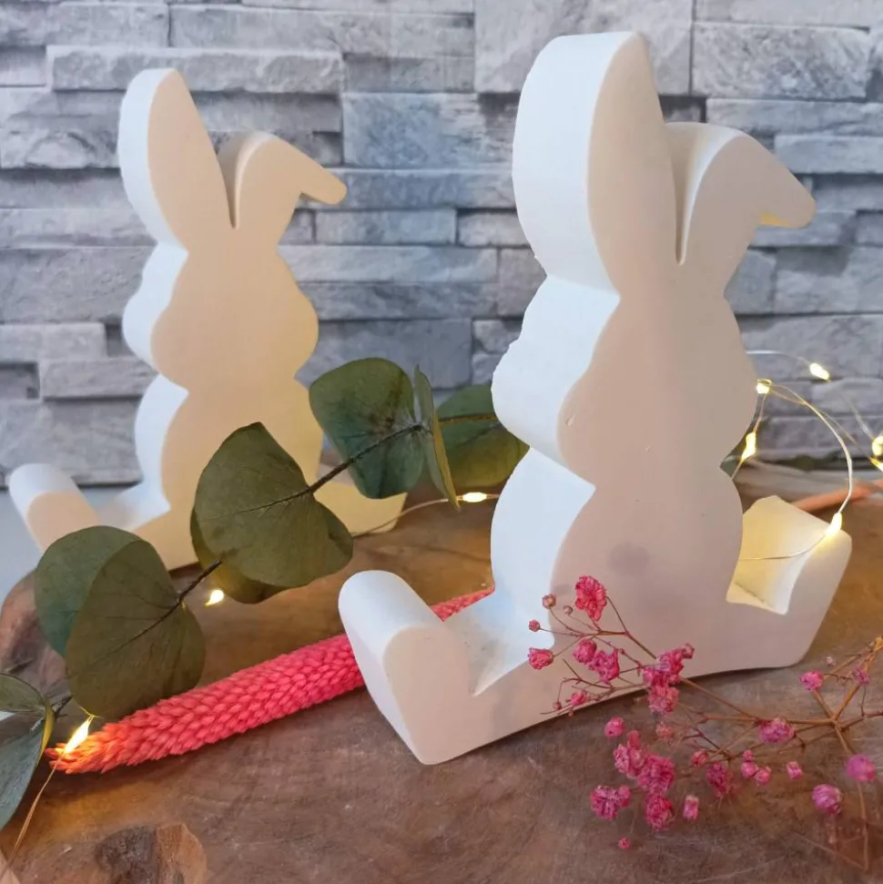 Jede meiner Osterhasen Figuren wird liebevoll von Hand gefertigt und ist somit ein einzigartiges Unikat. Dabei verwende ich Raysin oder Keraflott, ein feines, geruchsneutrales Gießpulver auf Gipsbasis. Die leichten Unregelmäßigkeiten und Lufteinschlüsse, die aufgrund des Materials auftreten können, sind charakteristisch für Dekorationen aus Raysin und verleihen jedem Stück seinen eigenen Charme. Du kannst sicher sein, ein ganz besonderes und individuelles Dekorationsobjekt zu erhalten, das sich von Massenware abhebt.