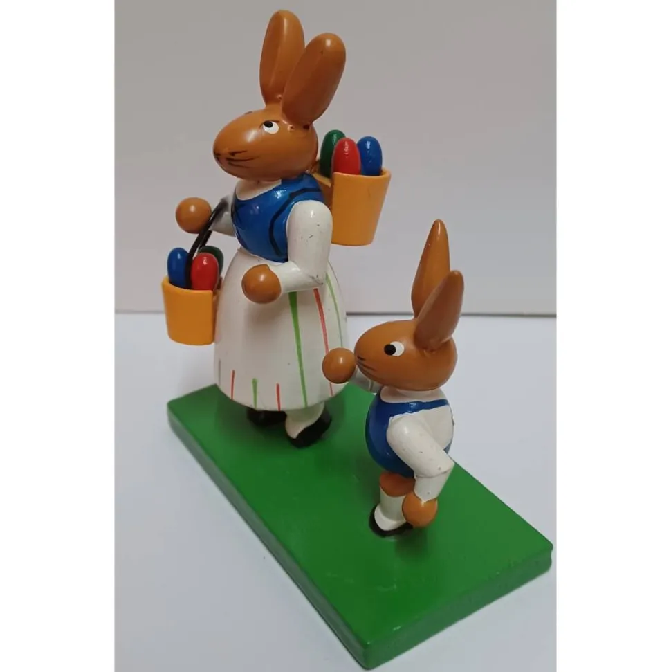 Der Osterhase weist keine Beschädigungen auf – lediglich leichte Lagerspuren unterstreichen seinen authentischen Charme. Mit den Maßen 8 x 4 cm und einer Höhe von 9 cm passt er perfekt auf jede Osterdeko oder in deine Sammlung.