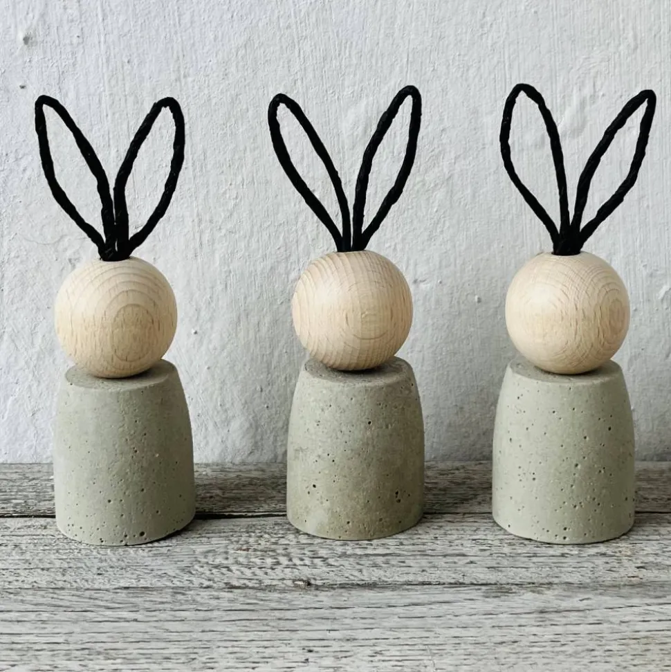 Seit ich vor einiger Zeit den Werkstoff Beton für mich entdeckt habe, mache ich vor fast nichts mehr Halt. Zusammen mit unbehandeltem Buchenholz und etwas Papierdraht sind daraus schlichte Osterhäschen im Skandi Stil entstanden.
