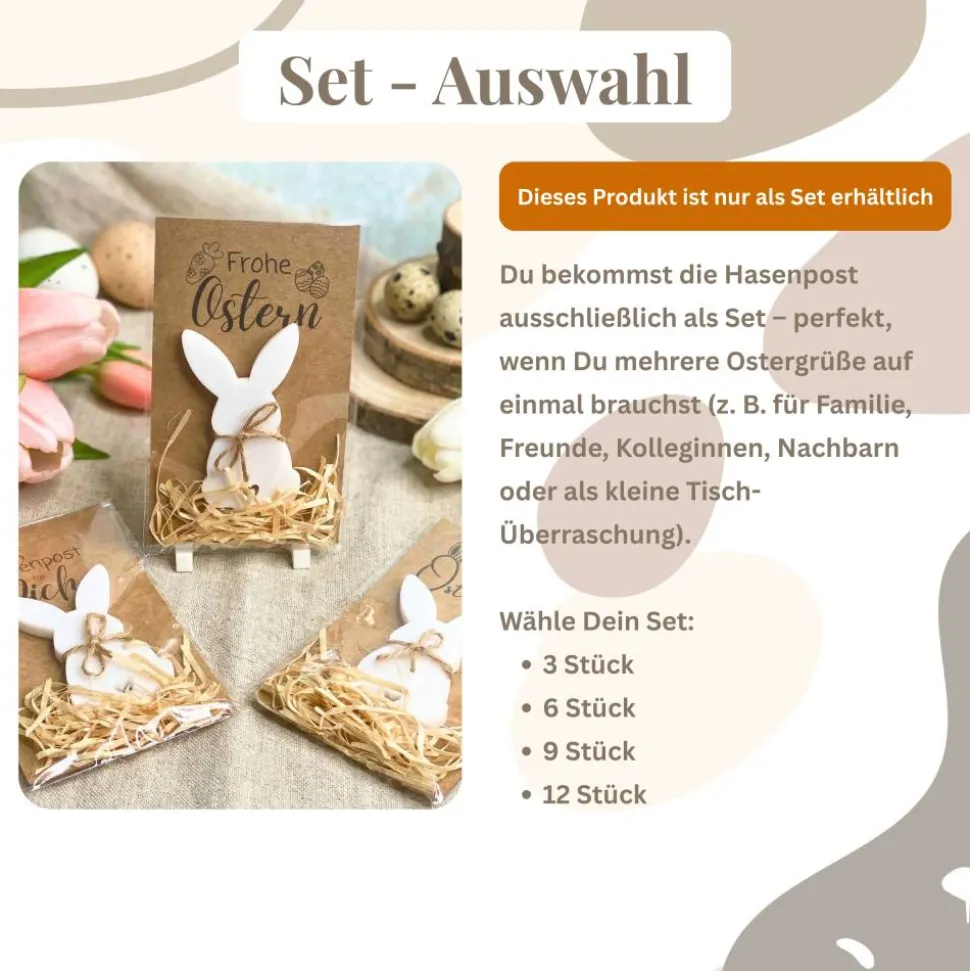 Lieferumfang: Hasenpost-Set (3 / 6 / 9 / 12 Stück), einzeln verpackt