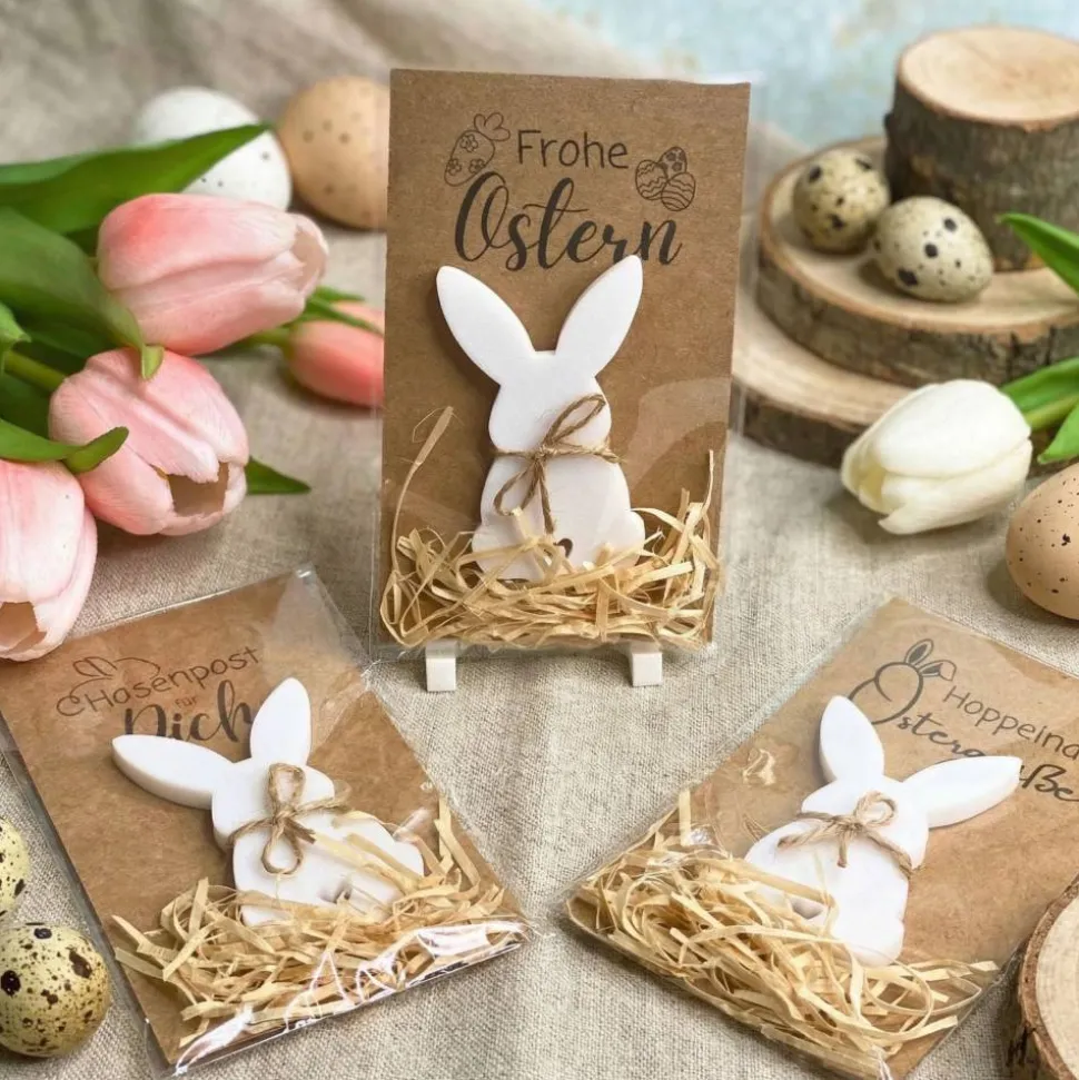 Manchmal braucht es kein großes Geschenk – nur eine kleine Geste, die genau im richtigen Moment kommt. Genau dafür ist unsere Hasenpost gedacht: eine Osterkarte im Set, die nicht nur „Frohe Ostern“ sagt, sondern auch gleich dekorativ wirkt.