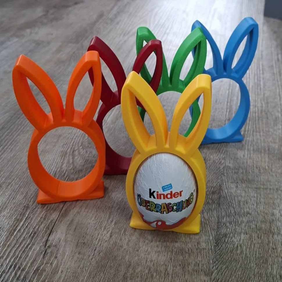 Der Halter ist nicht nur optisch ansprechend, sondern auch funktional durchdacht. Das Überraschungsei sitzt sicher in der vorgesehenen Aussparung, bleibt vollständig sichtbar und kann bei Bedarf leicht entnommen oder ausgetauscht werden. Dank des robusten PLA-Materials ist der Hasenhalter langlebig, leicht und über viele Saisons hinweg wiederverwendbar – ein nachhaltiger Vorteil im Vergleich zu kurzfristigen Wegwerfdekorationen.