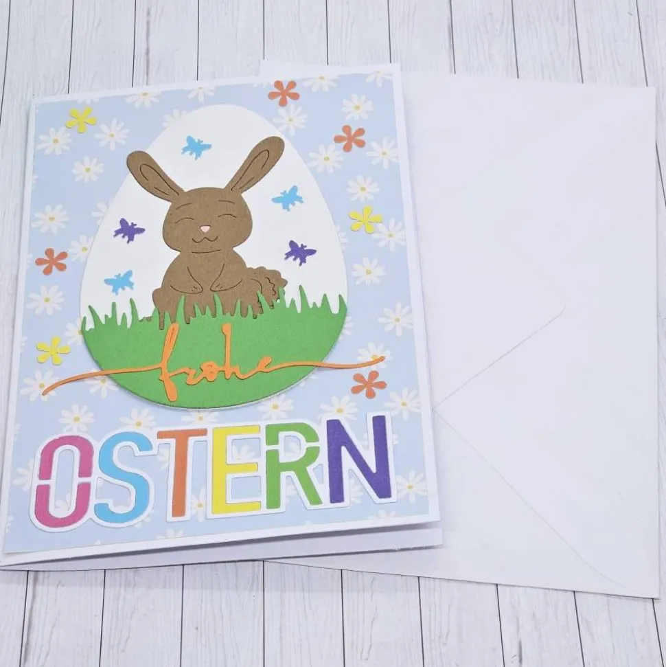 Zu dieser Karte gehört selbstverständlich ein passender, gummierter und gefütterter Briefumschlag. Karte und Umschlag zusammen wiegen unter 20g, sodass du sie mit normalem Briefporto verschicken kannst. Perfekt, wenn du deine Ostergrüße per Post versenden oder die Karte als Beilage zu einem Geschenk nutzen möchtest.
