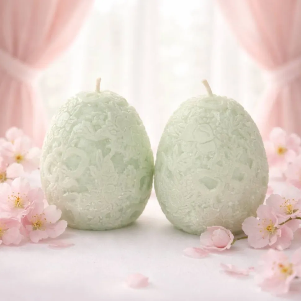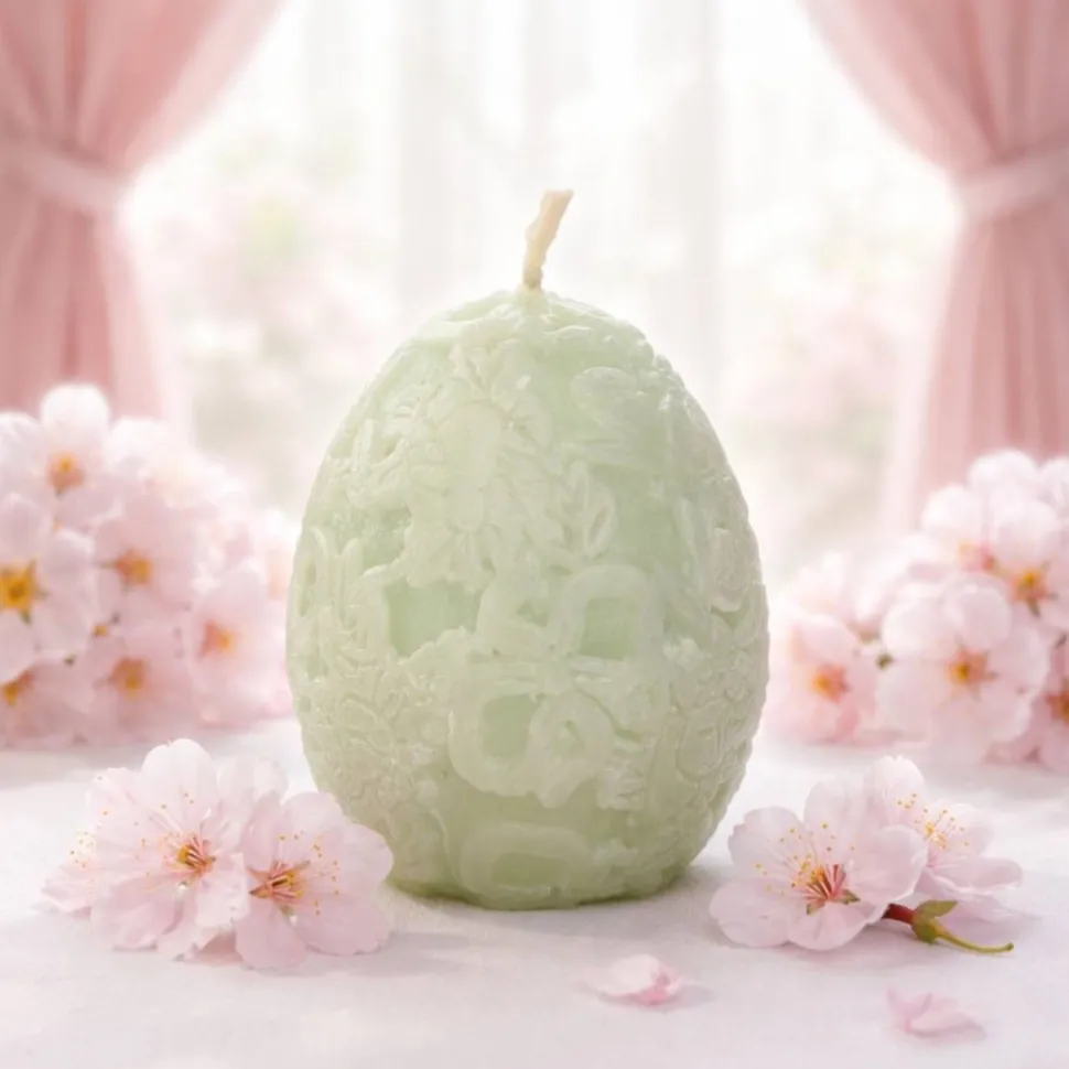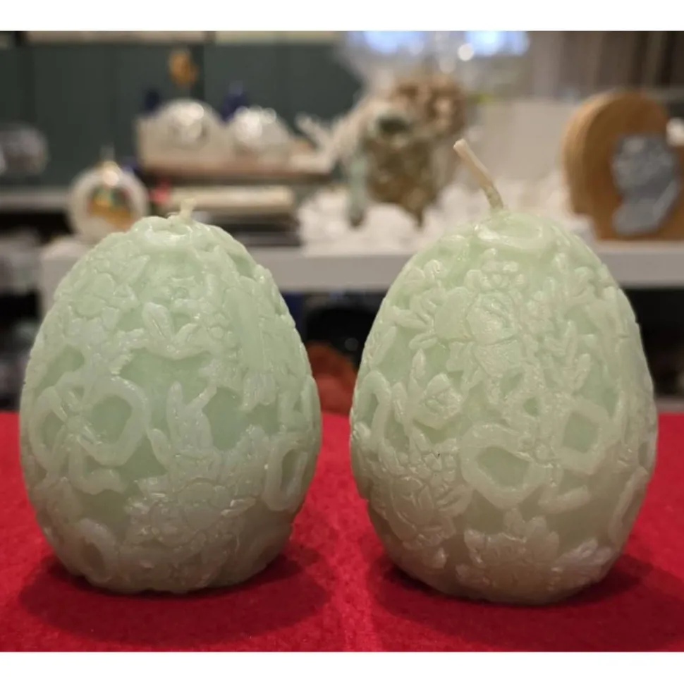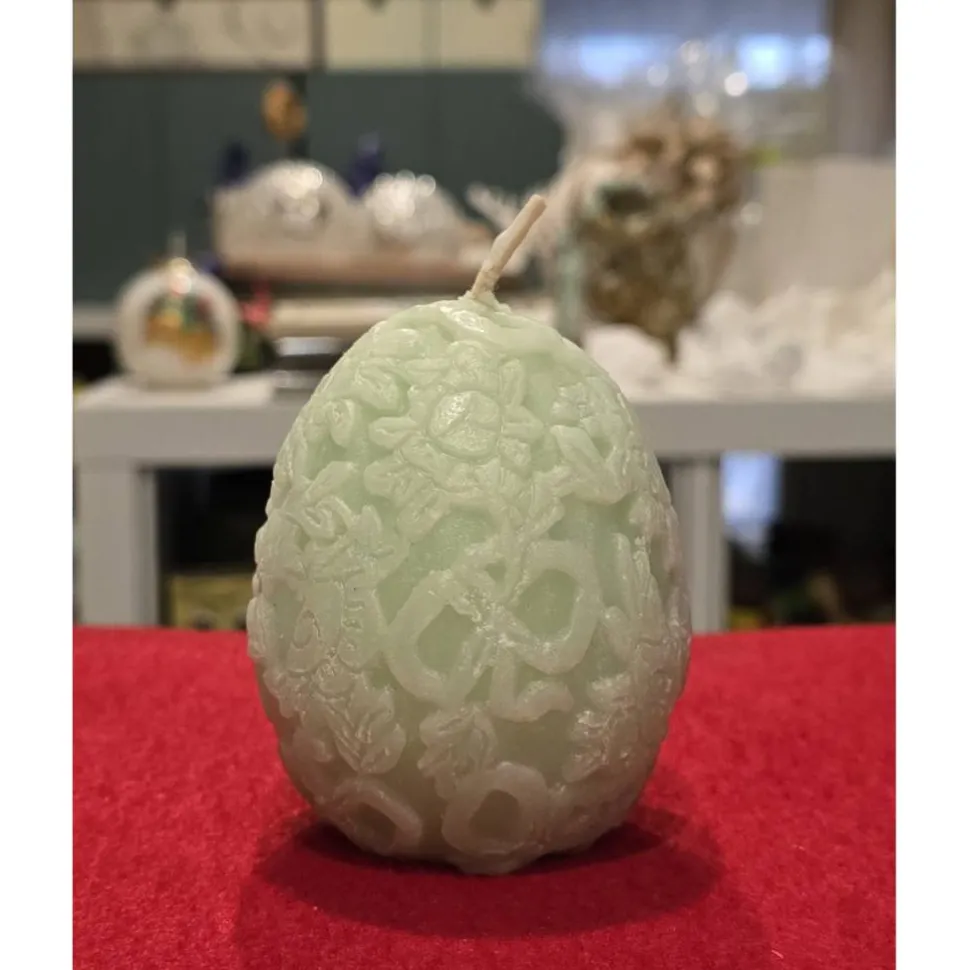 Die schöne Osterkerze im Form eines Ostereies ist 6,5×8,0 cm groß und fügt sich perfekt in Ihre Tischdeko oder Gestecke ein.