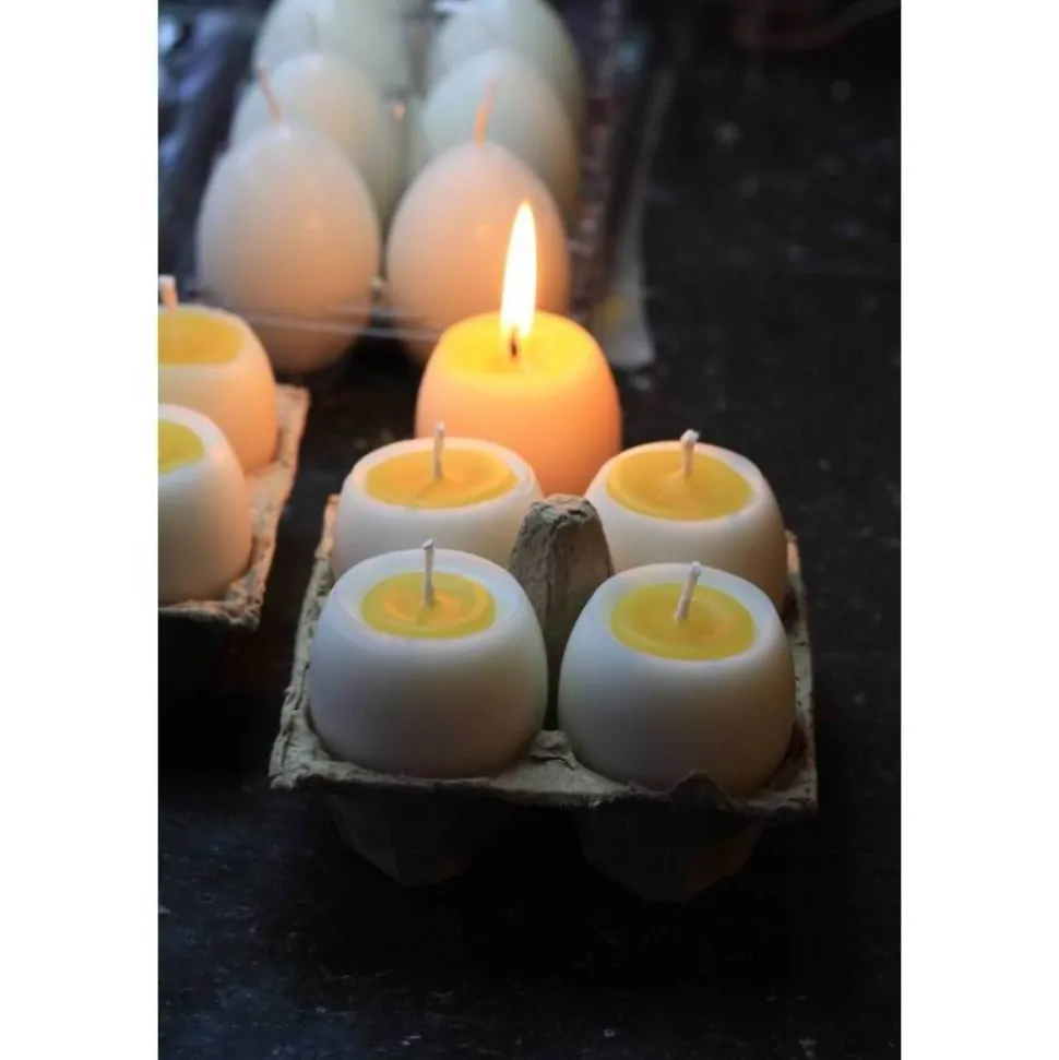 Als Mittelpunkt des Tisches sind die Kerzen in Form eines aufgeschlagenen Eies ein witziger Hingucker.