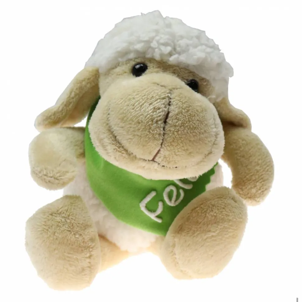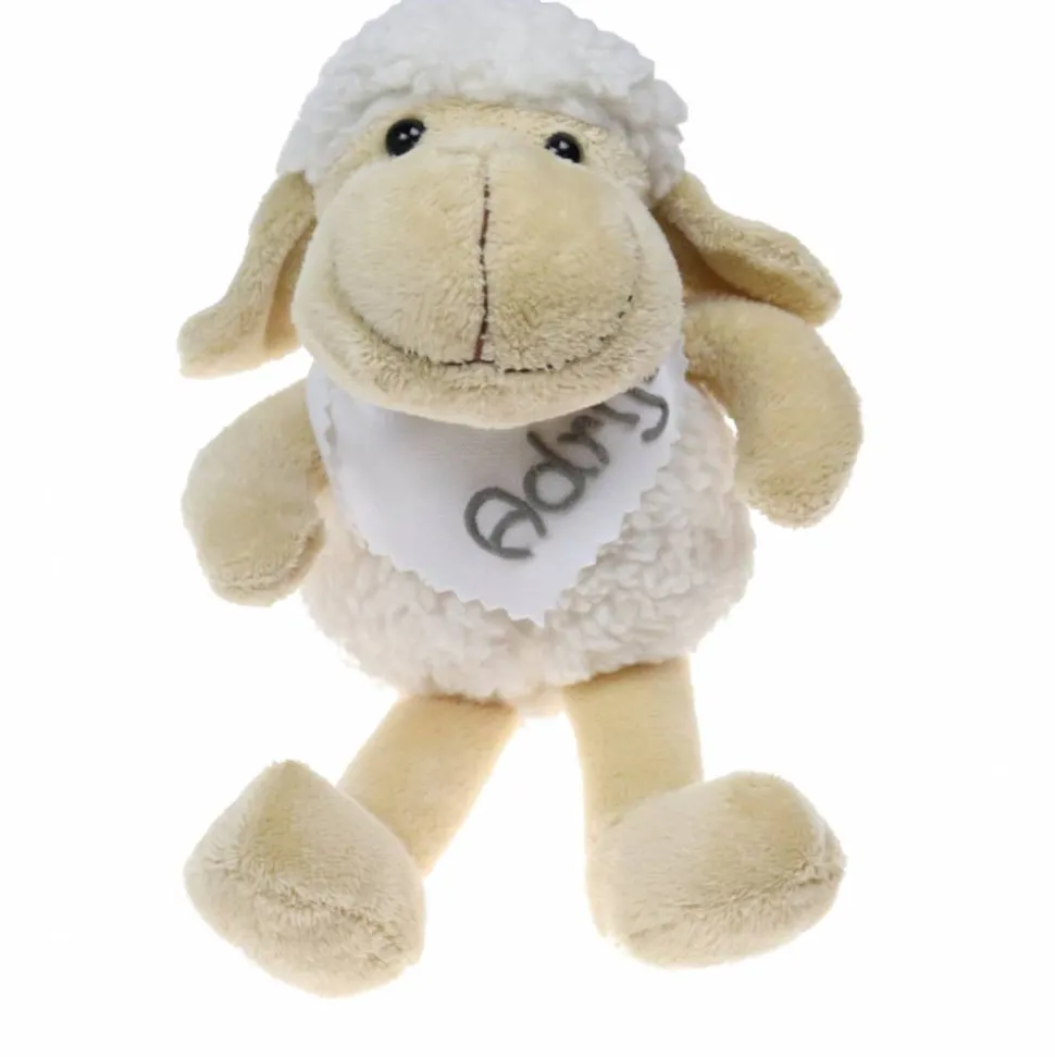 Das süße Schaf trägt ein Halstuch, das mit Namen versehen ist.