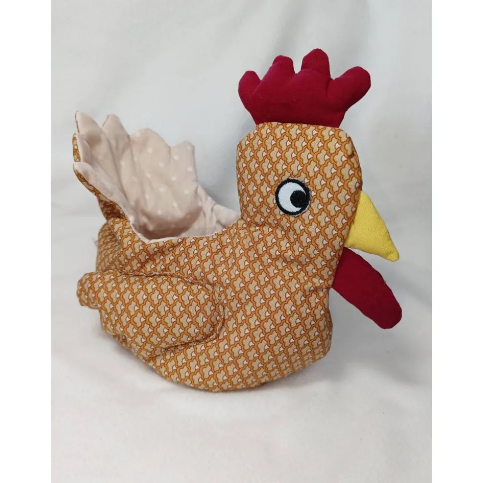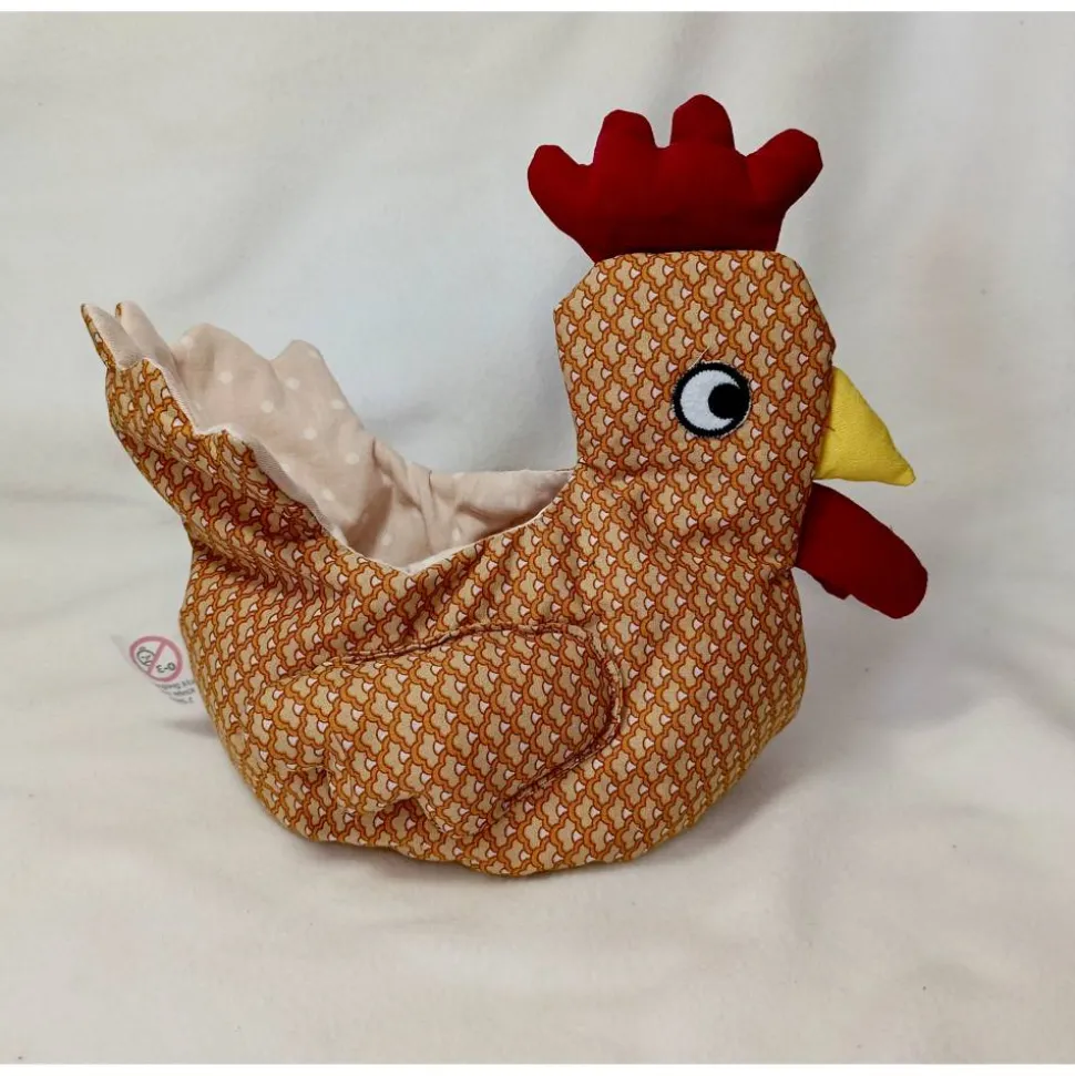 Bitte denken Sie daran,dass das Hühnchen aus Baumwollstoff besteht und nur einfach mit Nähmaschine und von Hand zusammen genäht ist, so wie zu Omas Zeiten. Wilde Spiele hält es daher nicht aus. Es ist eher als Deko Objekt geeignet.