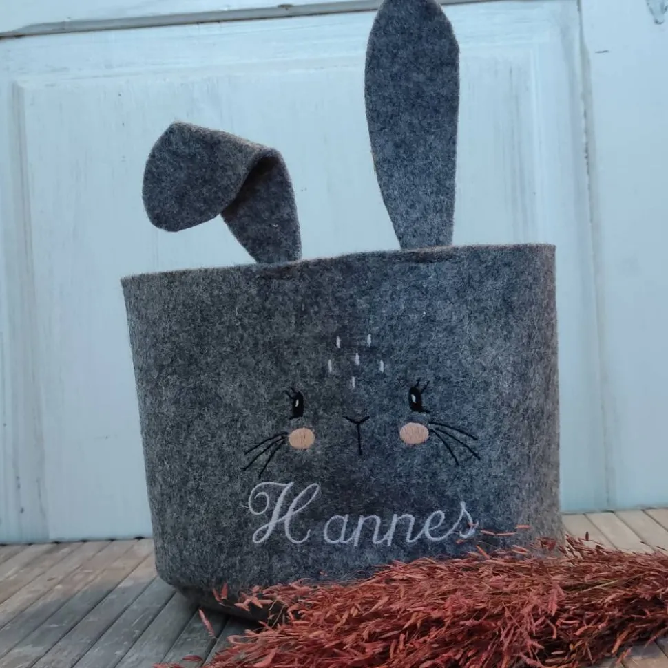 Auf der Suche nach einem Osterkörbchen? Dann seid ihr hier genau richtig. Hier gibt’s die niedlichen Hasenkörbchen mit Namen personalisiert. Die Farbe könnt ihr selbst auswählen
