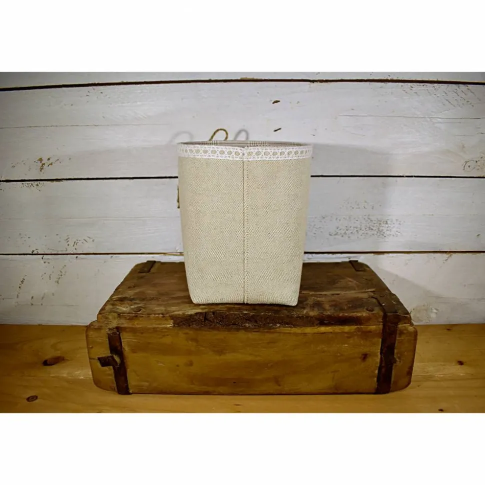 am oberen Rand ist eine weiße Spitze aufgenäht, die Schleife aus naturfarbenem Band kann einfach abgenommen werden