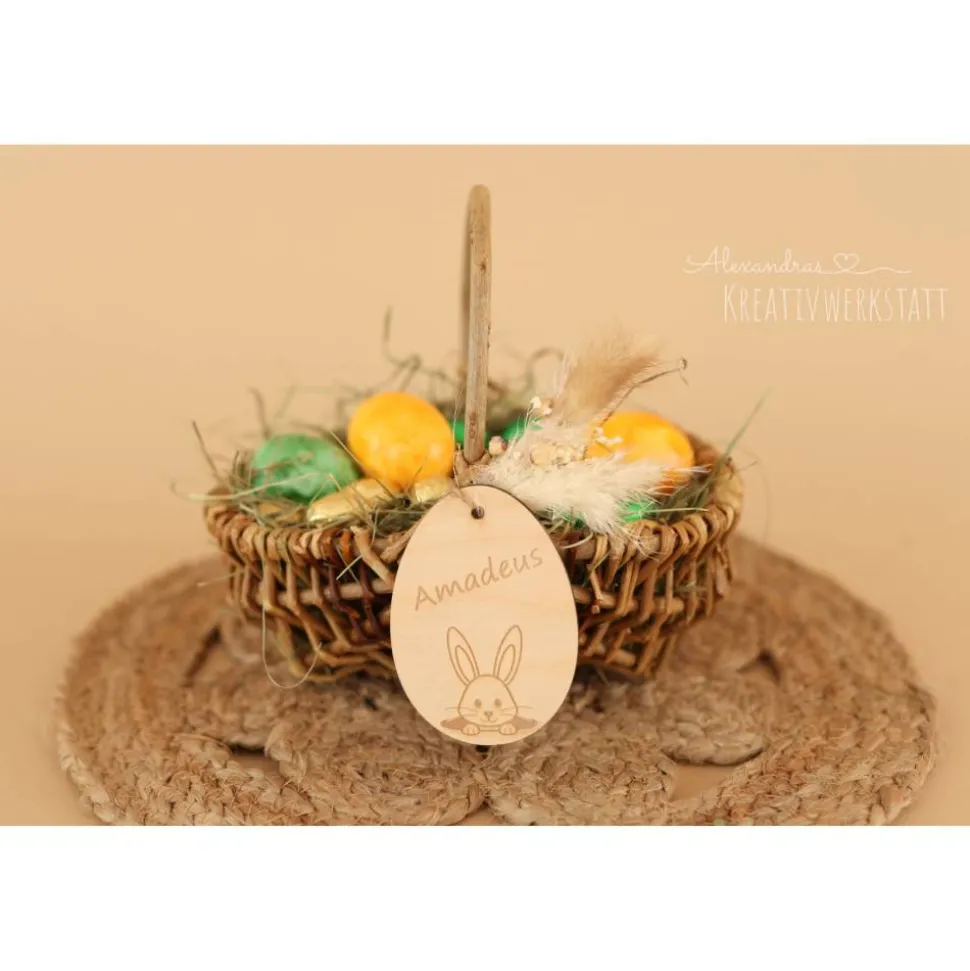Osterkorb, Osterkörbchen, Osternest, personalisiert Geschenkidee, Korb mit Namensschild, Osterdeko, Holzanhänger