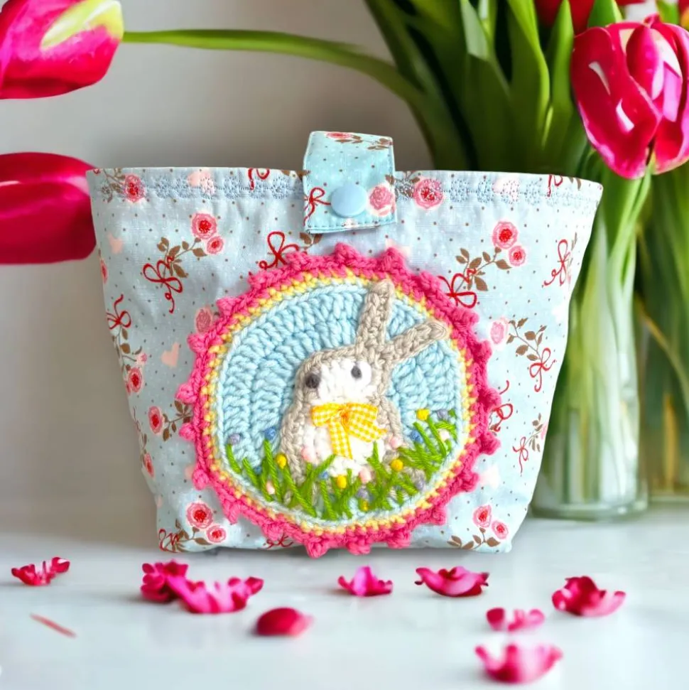Der kleine Osterkorb wartet nur darauf mit kleinen Leckereien gefüllt zu werden. Die Tasche ist aus aus Baumwollstoff genäht und mit einem Vlies gefüttert. So hat das Utensilo einen guten Stand und kann auch für die Osterdekoration hübsch gefüllt werden. Der Butten ist gehäkelt und gibt dem Osternest den letzten Schliff. Die Henkeltasche macht nicht nur was zu Ostern her. Der Henkel lässt sich abnehmen und so kann das Nest auch als Utensilo auch noch nach den Feiertagen genutzt werden. Oder mit Henkel als kleines Einkaufstasche für Kinder. Somit ein richtiges Multitalent und immer wieder nutzbar.