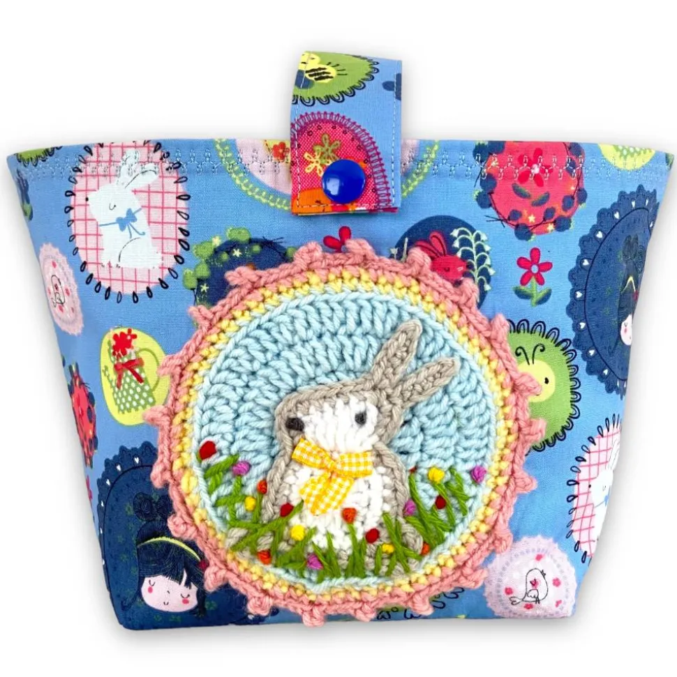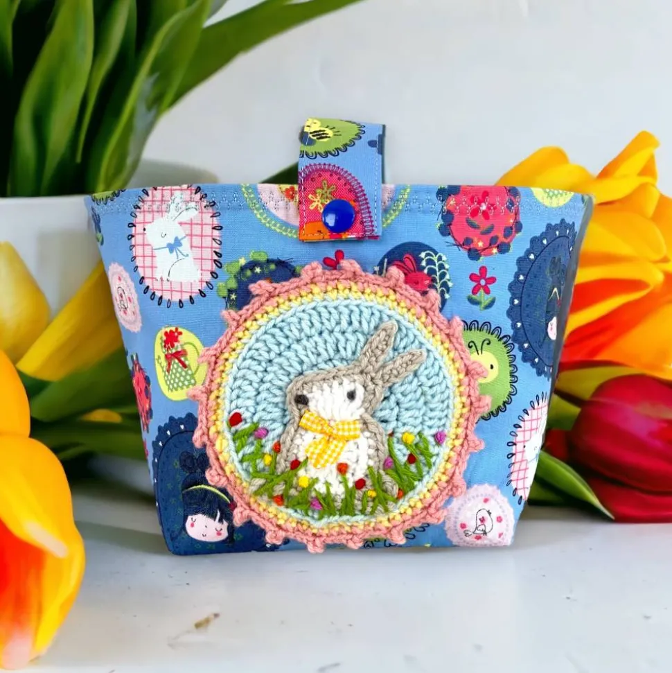 Der kleine Osterkorb wartet nur darauf mit kleinen Leckereien gefüllt zu werden. Die Tasche ist aus aus Baumwollstoff genäht und mit einem Vlies gefüttert. So hat das Utensilo einen guten Stand und kann auch für die Osterdekoration hübsch gefüllt werden. Der Butten ist gehäkelt und gibt dem Osternest den letzten Schliff. Die Henkeltasche macht nicht nur was zu Ostern her. Der Henkel lässt sich abnehmen und so kann das Nest auch als Utensilo auch noch nach den Feiertagen genutzt werden. Oder mit Henkel als kleines Einkaufstasche für Kinder. Somit ein richtiges Multitalent und immer wieder nutzbar.