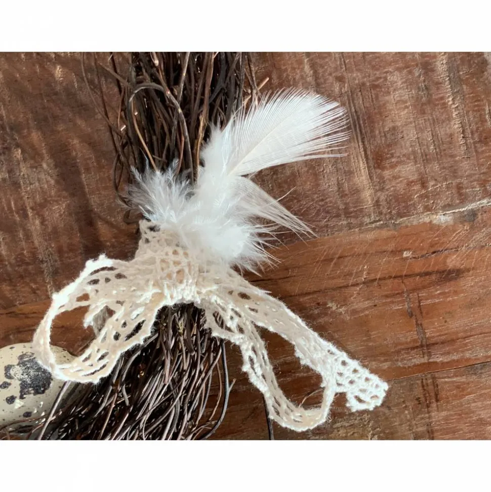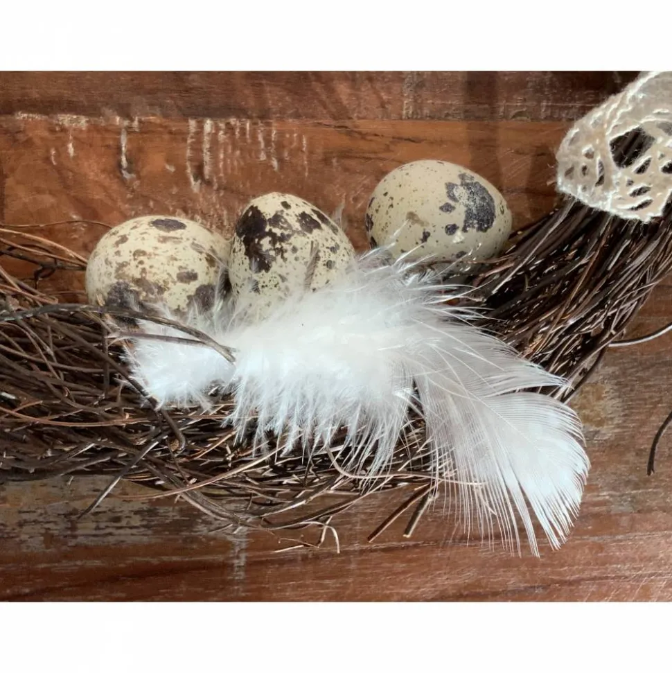 Federn bestückt , sowie 3 echten Wachteleiern und einer Spitzenbandschleife.