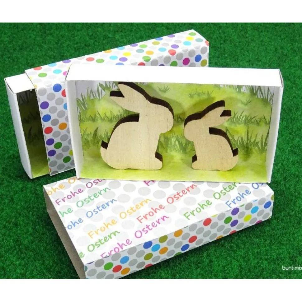 Die Osterhasen aus Holz sind nicht angeklebt, du kannst sie herausnehmen.
