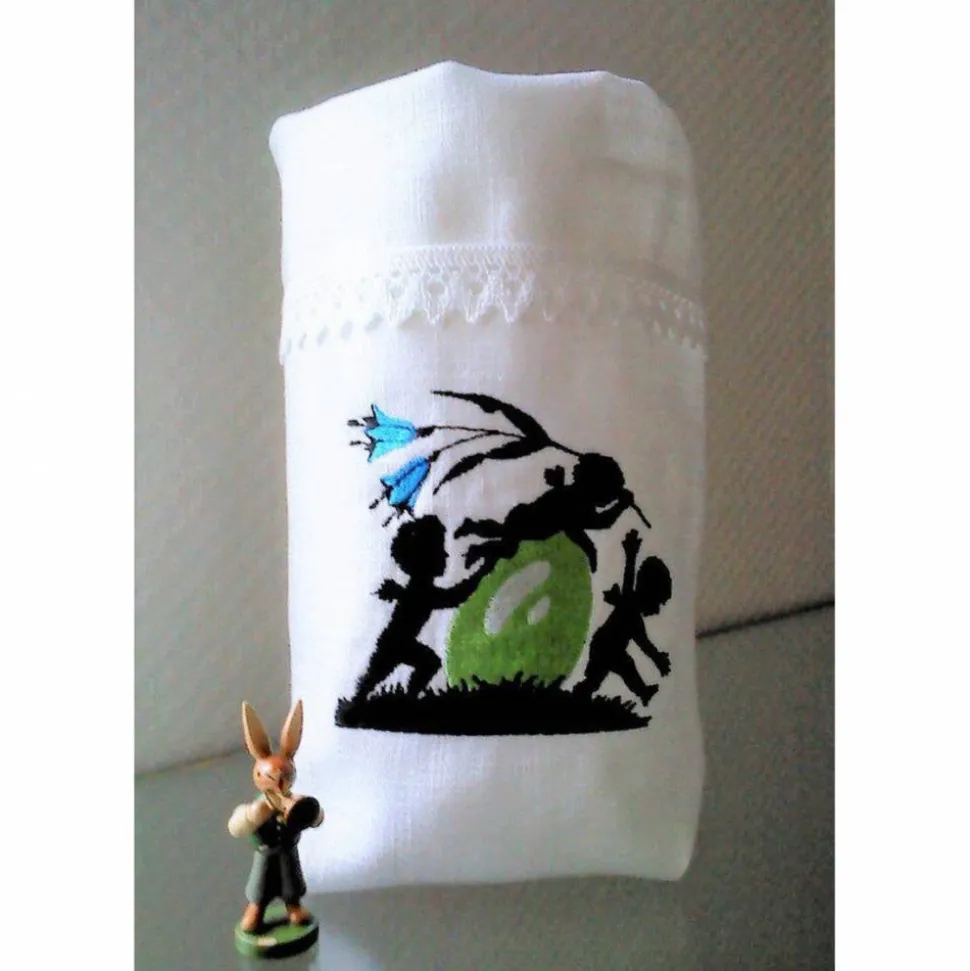 In den Beutel stellen Sie ein Glas und geben Ostereier, ein Teelicht, eine Kerze, Besteck,