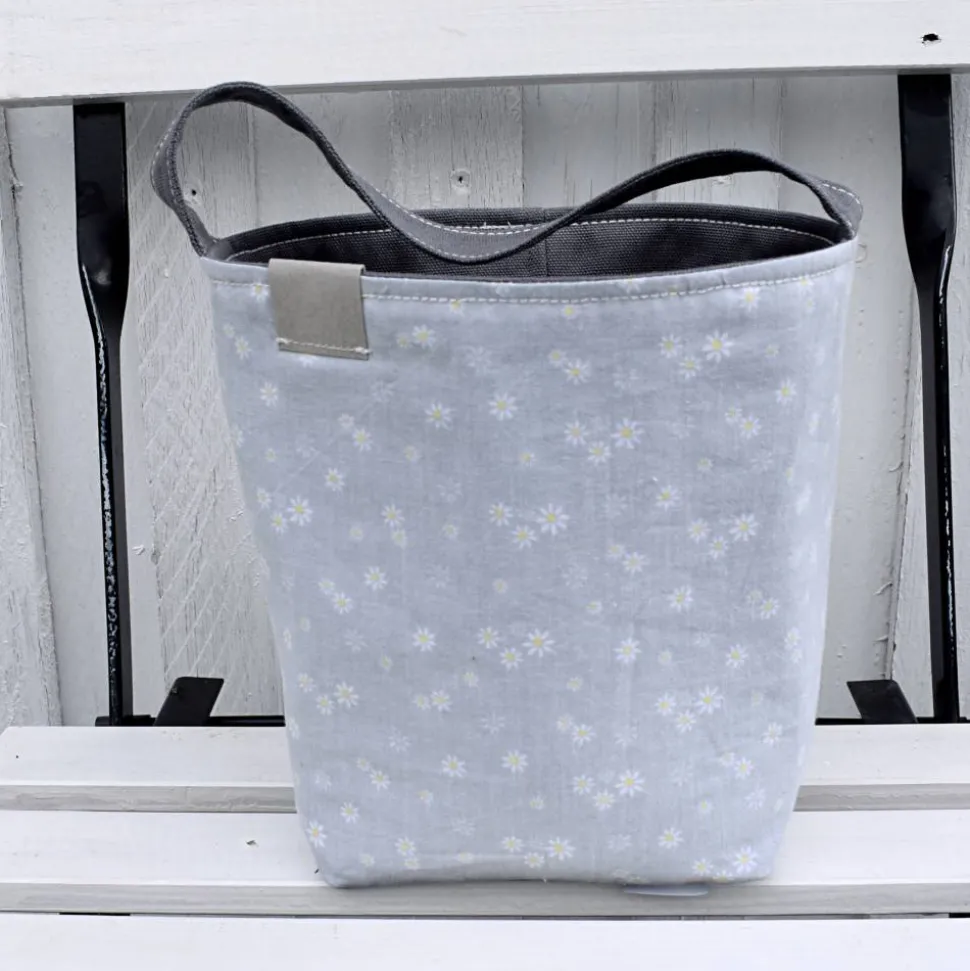 Die Tasche wurde von mir aus robustem mittelgrauem Canvas genäht.