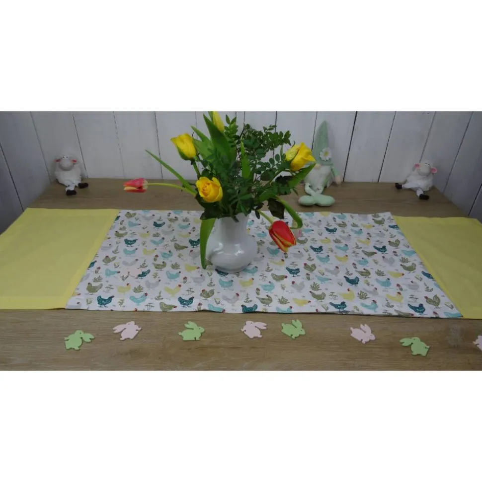 Frühling und Gemütlichkeit vermittelt dieser tolle Stoff. Ob für den Gartentisch, Esstisch oder Wohnzimmertisch: diese Tischdecke ist ein echter Hingucker. Machbar ist die Tischdecke und der Läufer in verschiedenen Größen und Formen. So kann der Läufer z.B. mit einer Spitze oder gerade genäht werden. Passend dazu gibt es auch Platzsets.