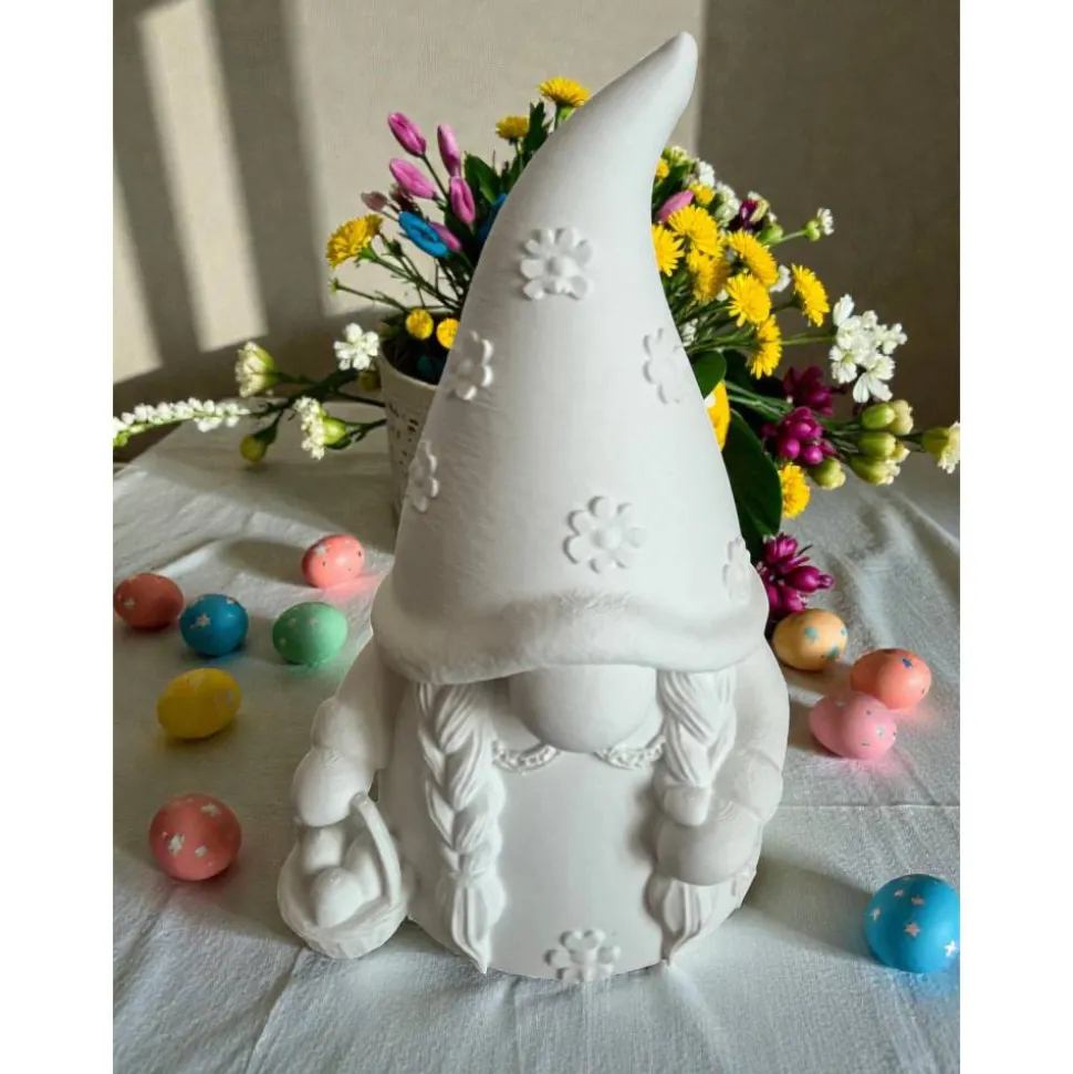 2.Die Gnom-Dame mit hübschen Zöpfen und Blumenverzierung.