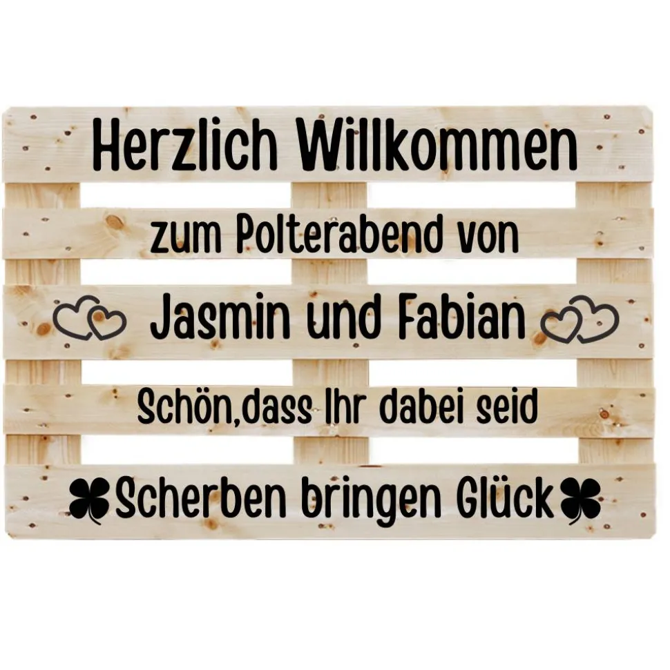 Du bist auf der Suche nach personalisierter Beschriftung für dein Diy Projekt Europalette als Begrüßung für die Gäste zum Polterabend .