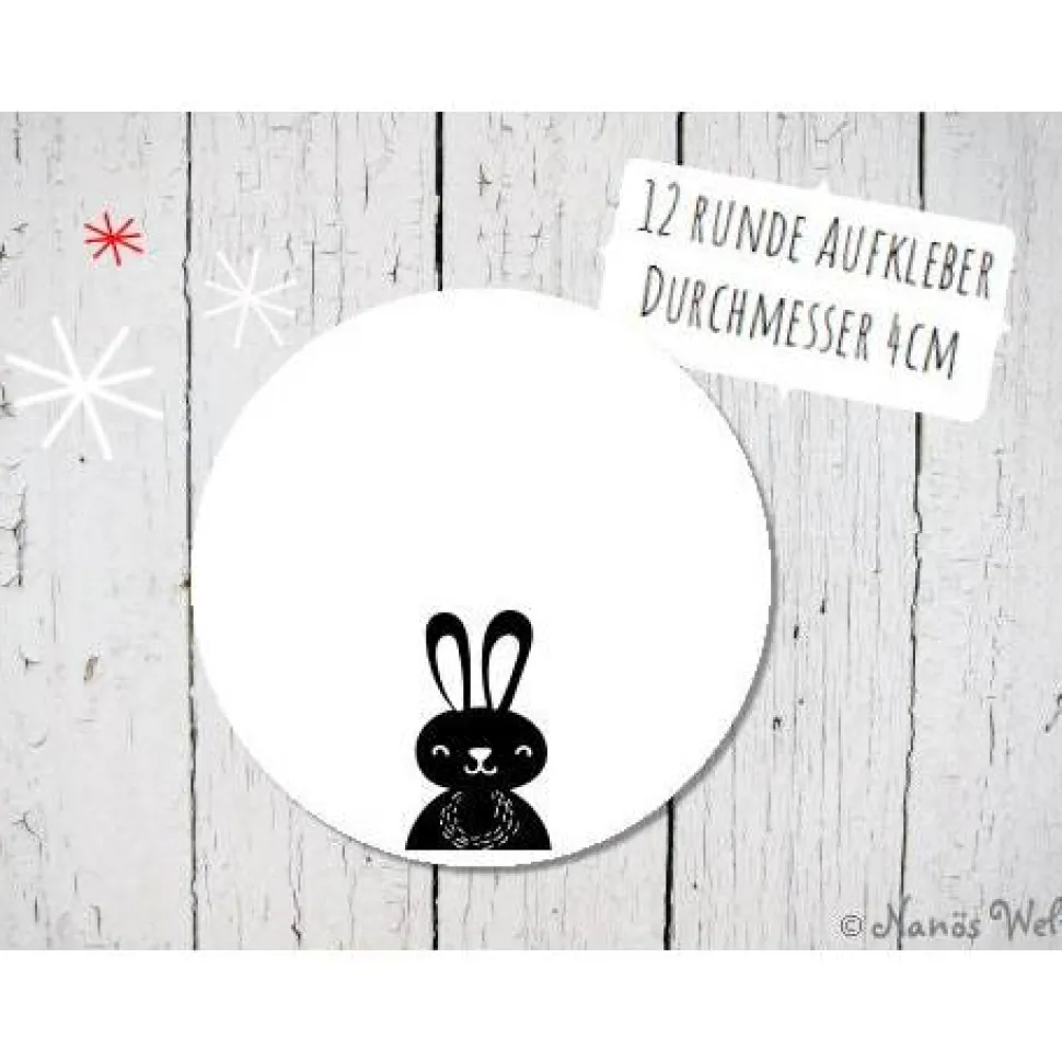 Papieraufkleber zum Selbstbeschriften mit Hase in schwarz-weiß 4cm rund