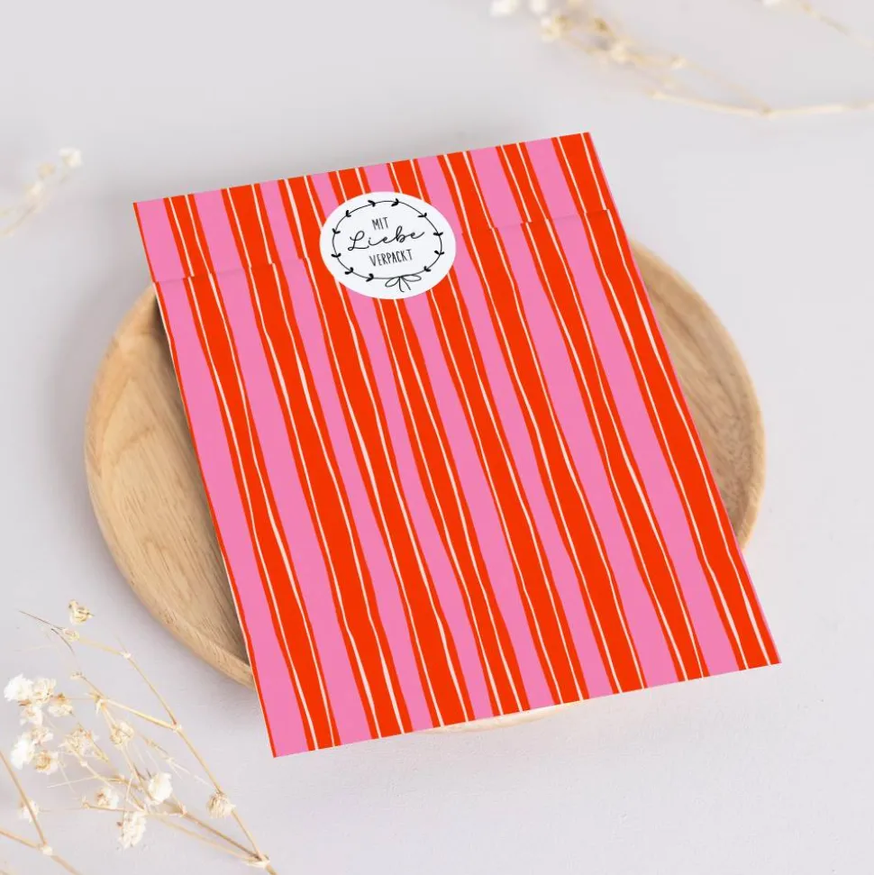 Die Flachbeutel sind in 3 Größen und für einen schnellen und sicheren Verschluss optional mit Haftverschluss erhältlich. Mit unseren Geschenkaufklebern lassen sich die Geschenktüten hingegen dekorativ verschließen. Diese sind separat in verschiedenen Ausführungen und Größen in unserem Shop erhältlich.