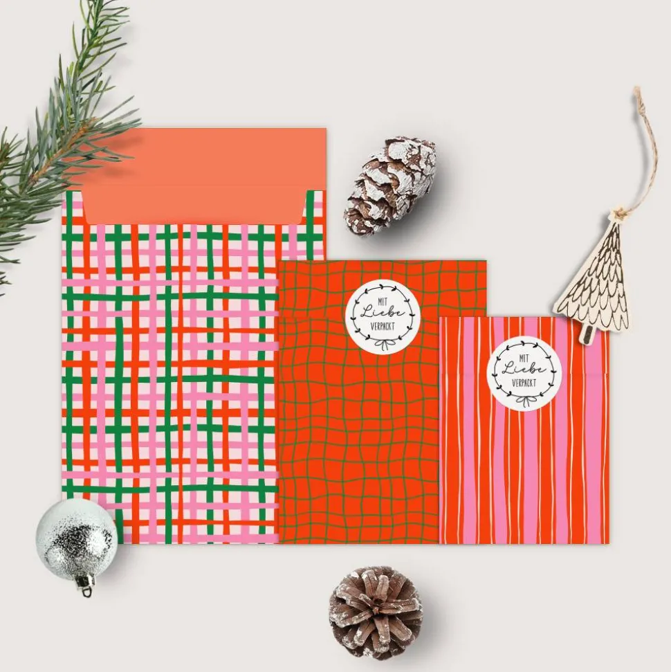 Papiertüten sind eine praktische Verpackung für Geschenke, Geschenkgutscheine, kleine Mitbringsel, Aufmerksamkeiten und Leckereien. Diese umweltfreundlichen Geschenktüten mit farbenfrohen und trendigen Design sind von hoher Qualität und eignen sich perfekt als Geschenkverpackung für Advent und Weihnachten. Zusammen mit unseren Zahlenaufklebern lässt sich schnell und einfach ein Adventskalender gestalten.