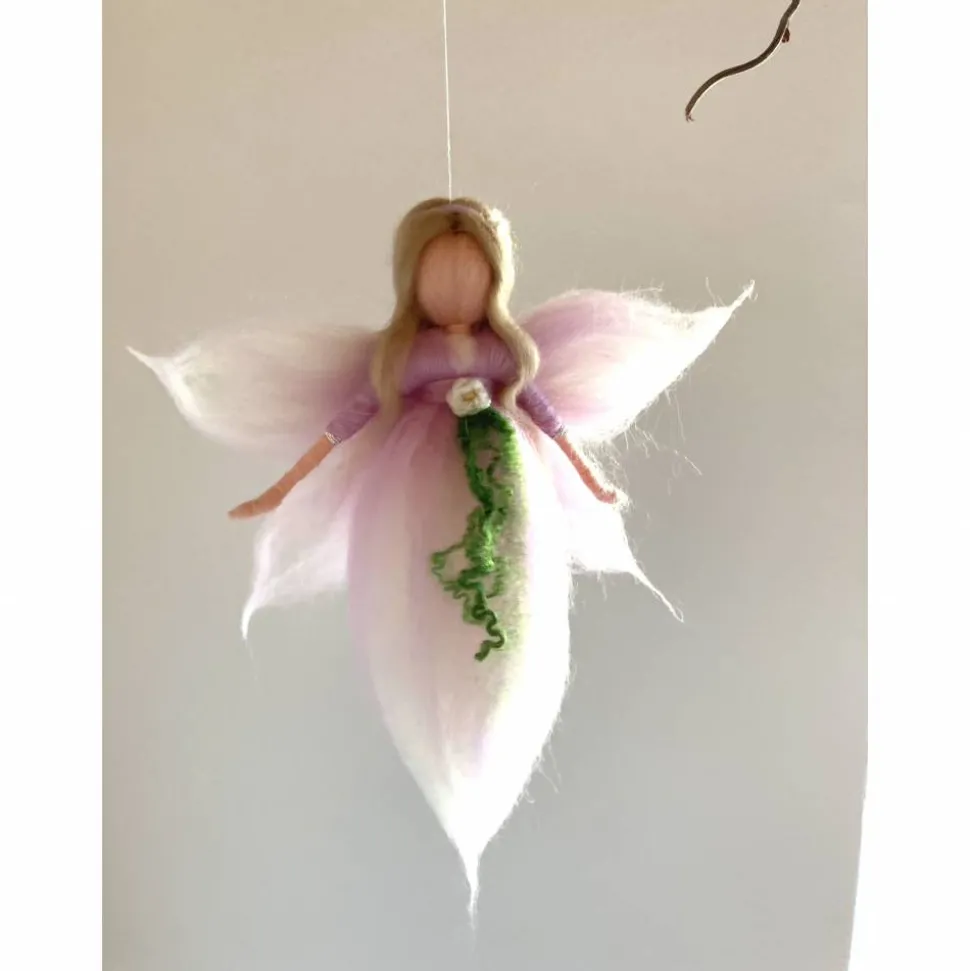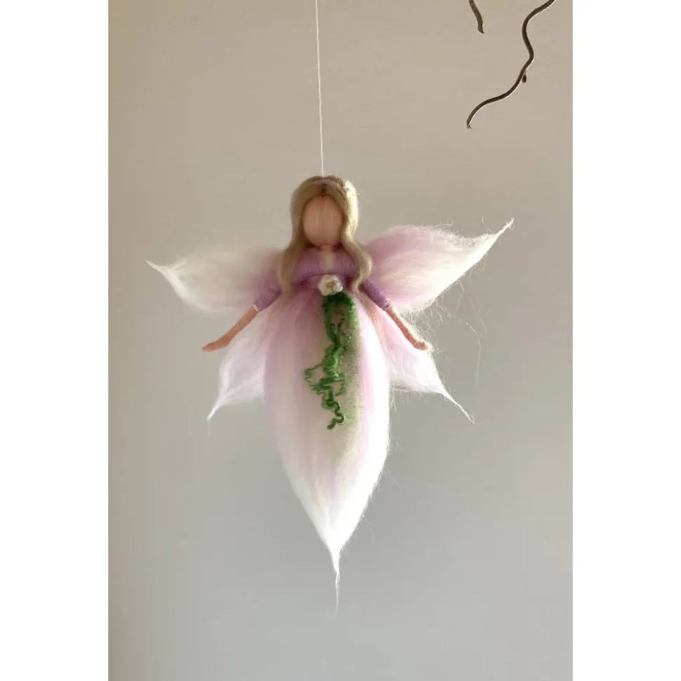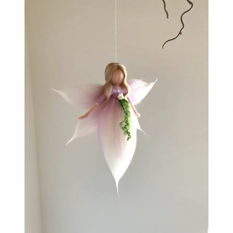 Eine zarte pastellrosa gefilzte Blumenfee. Dieses zauberhafte Wesen wurde mit der Nadel gefilzt und ist ca.20 cm groß. Sie ist ein wunderbares Geschenk zur Taufe, Geburt oder einem besonderen Anlass. Auf Wunsch kann die Fee auch mit einer anderen Haarfarbe ausgestattet werden.