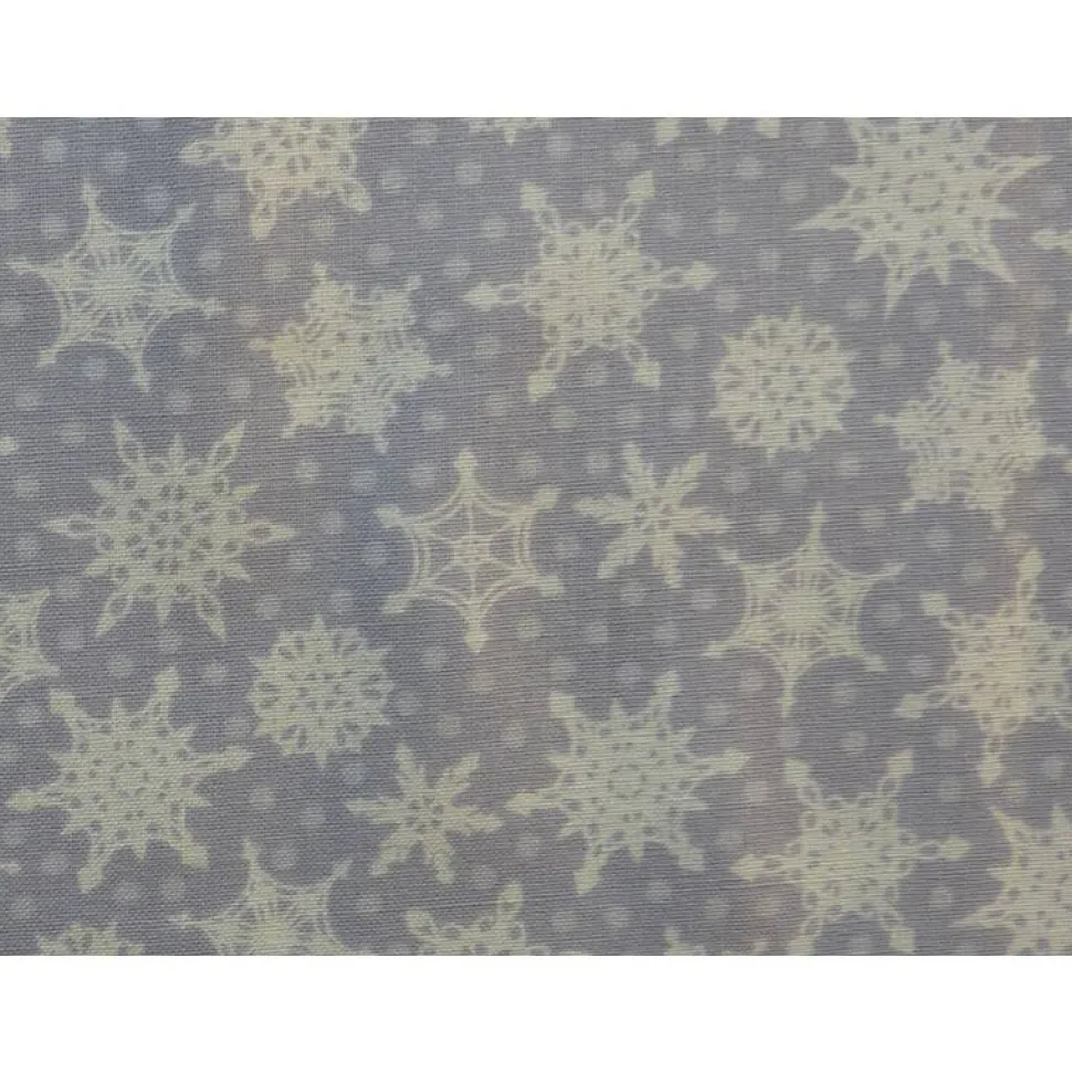 Ein Weihnachtsstoff in einer kühlen Farbe. Die weißen, verschiedenen großen Kristalle sind ca. 2,5 cm groß und kommen auf dem grauem Hintergrund sehr gut zur Geltung. Der Stoff gehört zwar nicht in eine Serie, von der ich auch ein Stoffpaket zusammengestellt habe, fügt sich aber wunderbar ein.