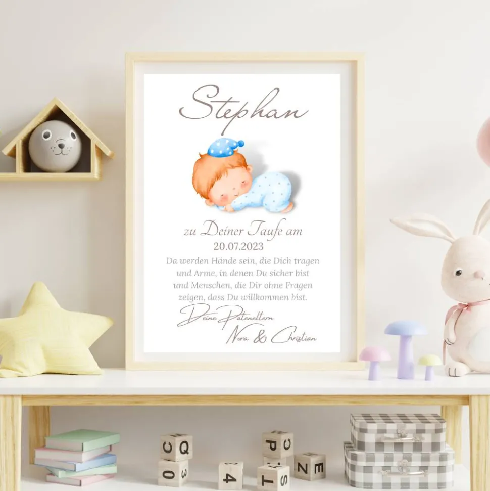 Als Wanddeko Poster im Babyzimmer bleibt es eine tolle Erinnerung an die Taufe.