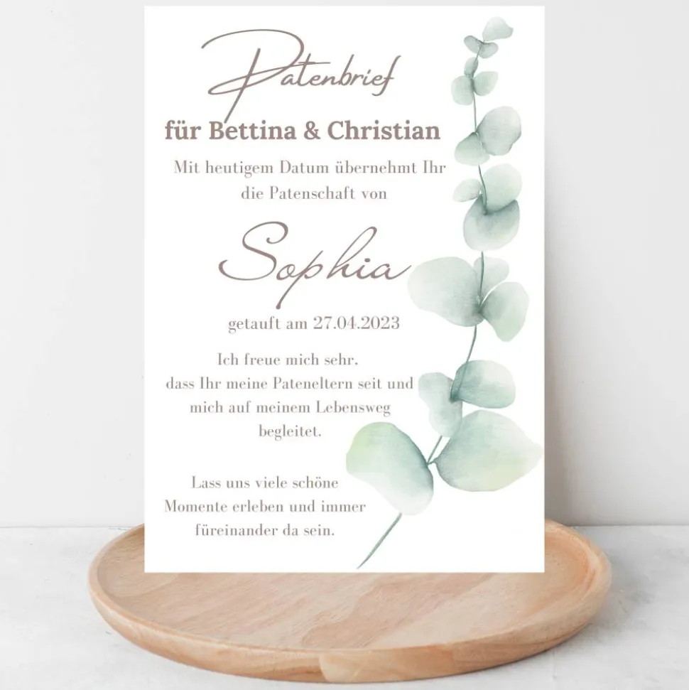 Diesen Patenbrief kannst Du wunderbar einrahmen und als Geburtsposter oder als Urkunde verschenken.