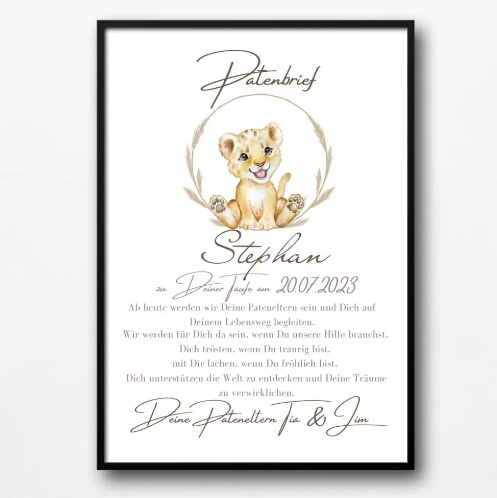 Diesen Patenbrief kannst Du wunderbar einrahmen und als Geburtsposter oder als Urkunde verschenken.