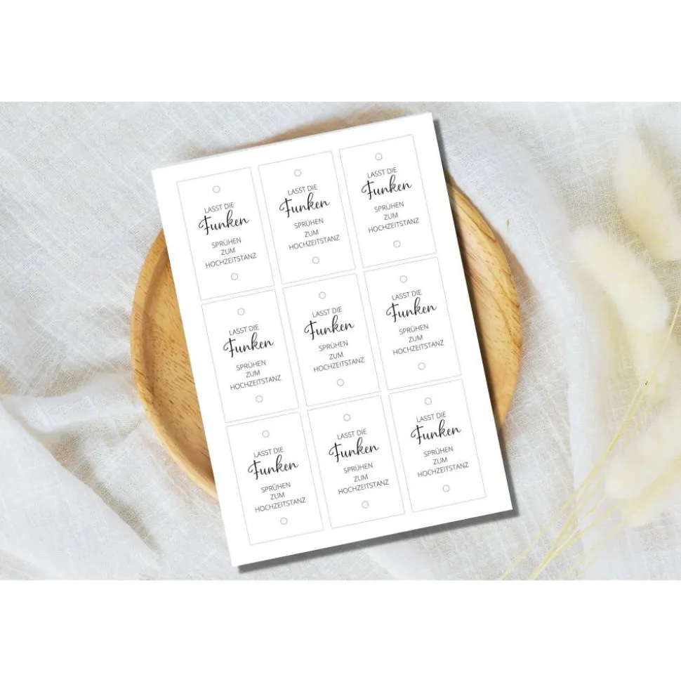Du planst gerade deine Hochzeit oder du möchtest eine Überraschung für das Brautpaar vorbereiten? Mit dieser PDF Vorlage hast du ganz schnell tolle Anhänger für Wunderkerzen selbst gebastelt. Einfach auf dickem weißen Papier oder auch Kraftpapier / bunten Papier ausdrucken, schneiden, lochen und Wunderkerzen durch stecken – FERTIG !!!