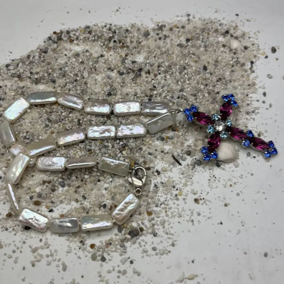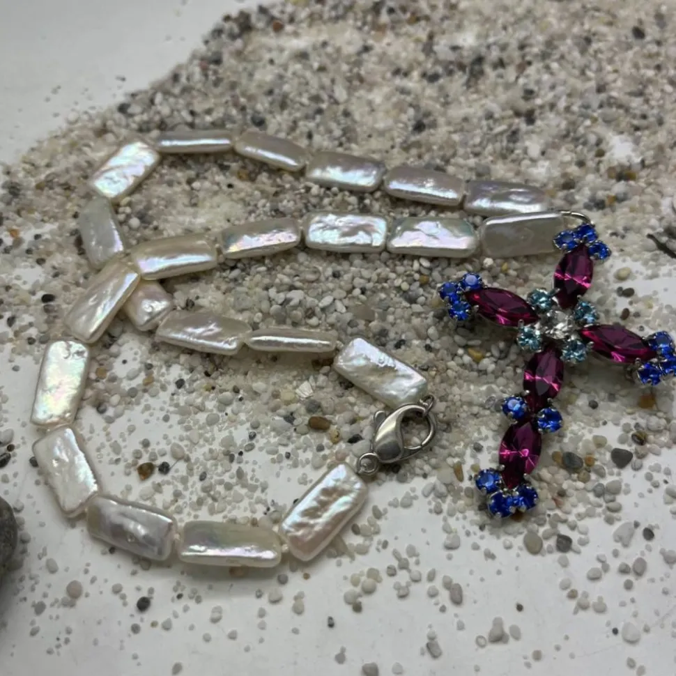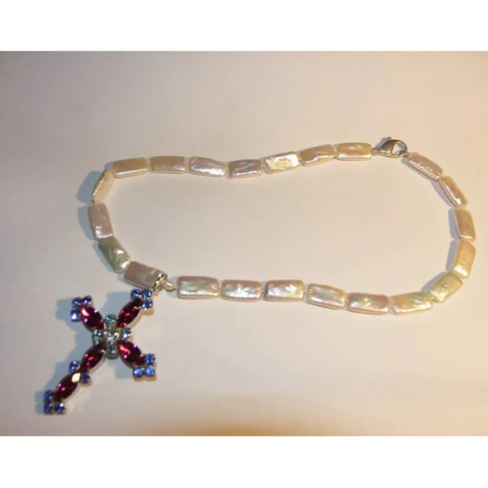 Die Kette wird mit einem echten 925er silbernen Karabiner geschlossen. Das Kreuz ist abnehmbar und auch separat als Anhänger zu tragen. Damit wird diese Perlenkette auch sehr gerne als Schmuckstück zu anderen Anlässen getragen.
