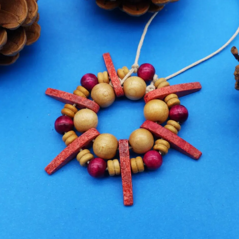 Die Spitzen der Sterne sind griechische Keramikperlen. Die Perlenringe sind aus Holz..