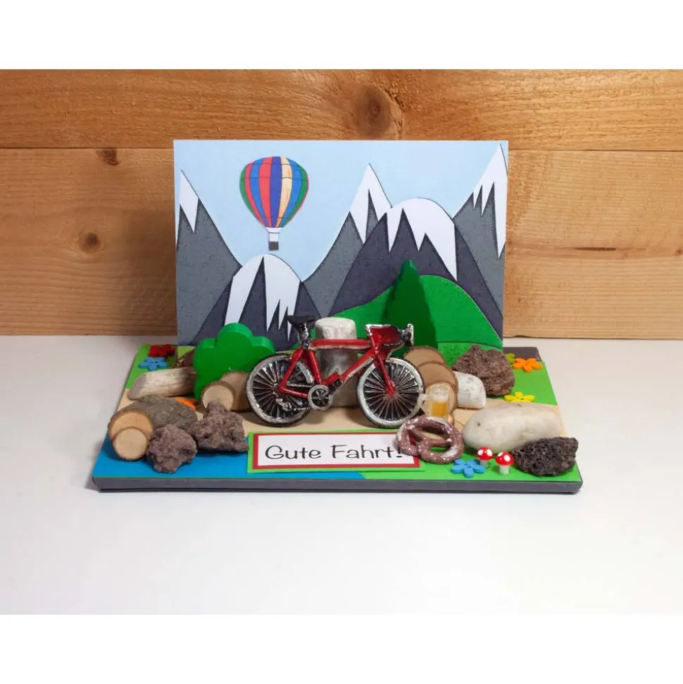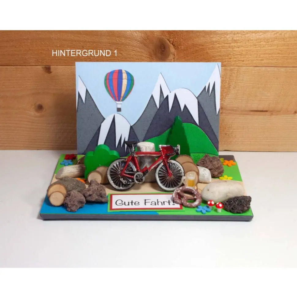 Verschenke eine originelle, personalisierbare 3D Fahrrad Geldgeschenk Karte – ideal für Radfahrer, Ruheständler und Männer, die das Besondere lieben! Diese aufwendig und liebevoll gestaltete Karte zeigt ein Fahrrad vor Bergpanorama mit Heißluftballons oder einem Hintergrund deiner Wahl (siehe Variationen). Sie ist perfekt für Gutscheine oder Geldgeschenke rund um die Themen Rad fahren, Radtour, Fahrradzubehör, Radurlaub, Ruhestand, Hochzeitsreise, Männergeschenke, Ballonfahrt und mehr.
