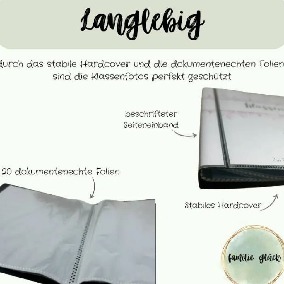 Ob als Geschenk zur Einschulung oder als praktische Lösung für die geordnete Aufbewahrung von Schulfotos – dieses Schulfotoalbum ist vielseitig einsetzbar und überzeugt durch Qualität und Stil.