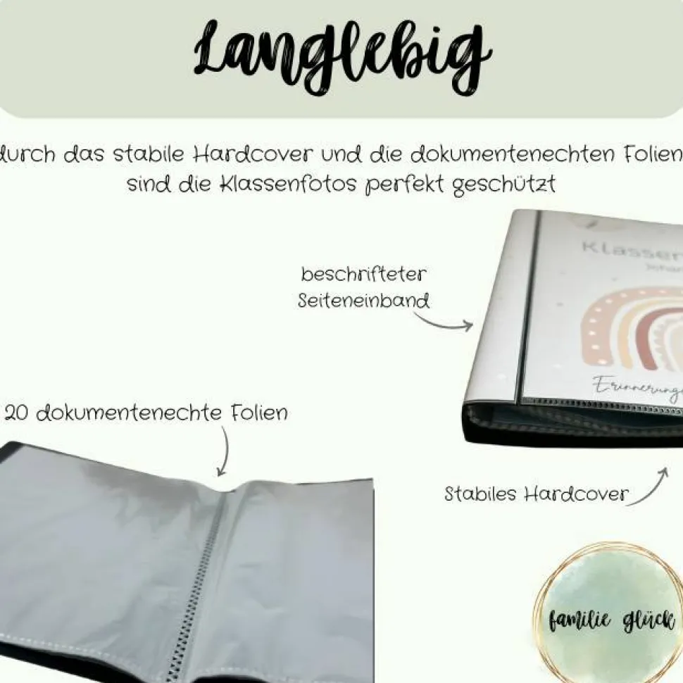Ob als Geschenk zur Einschulung oder als praktische Lösung für die geordnete Aufbewahrung von Schulfotos – dieses Schulfotoalbum ist vielseitig einsetzbar und überzeugt durch Qualität und Stil.
