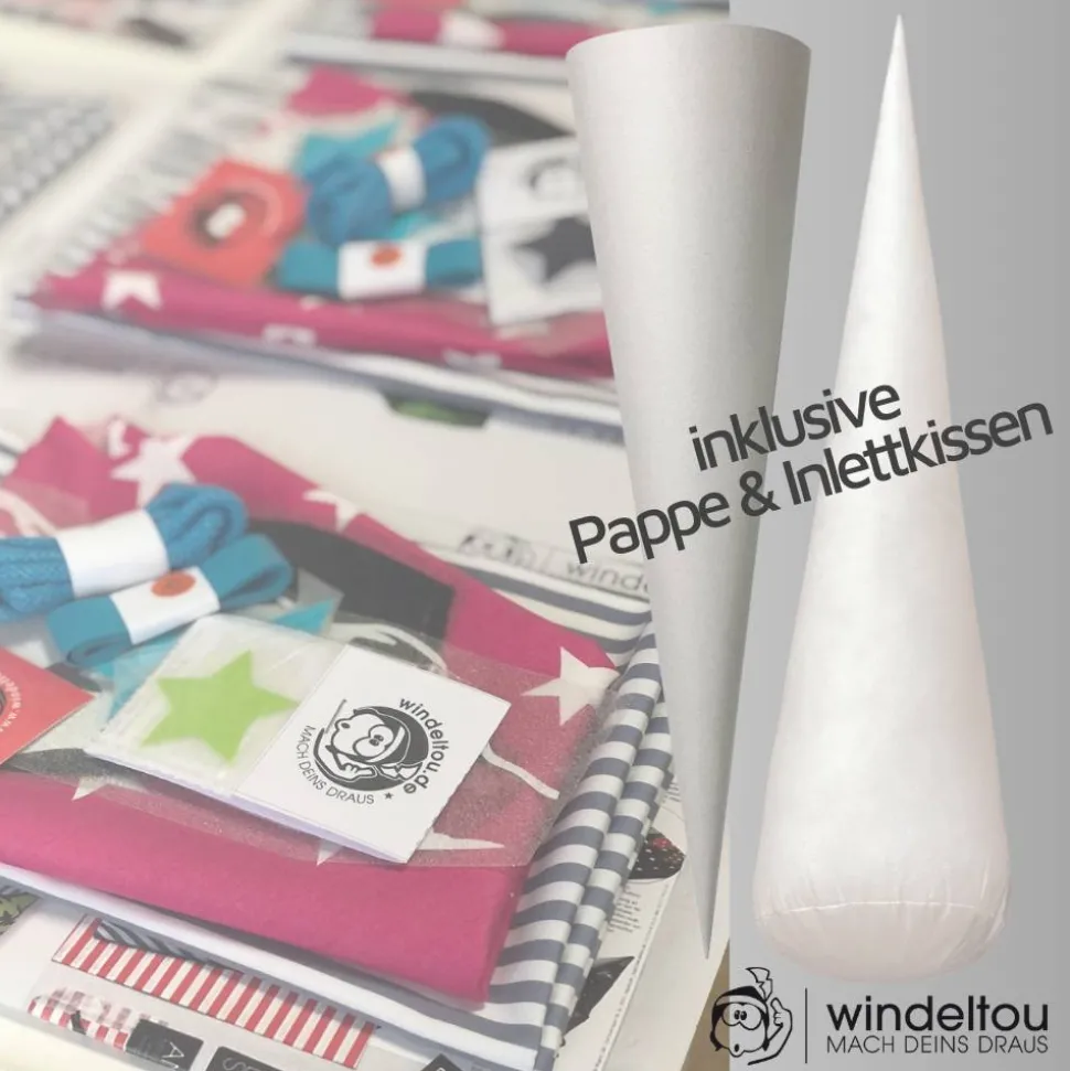 Unser Nähset für Schultüten richtet sich an alle DIY-Enthusiasten. Passend für einen 70 cm hohen Schultüten-Rohling mit einem Durchmesser von 18 cm. Alle Teile sind vorgeschnitten und mit 1,0 cm Nahtzugabe versehen.