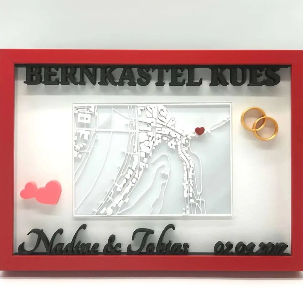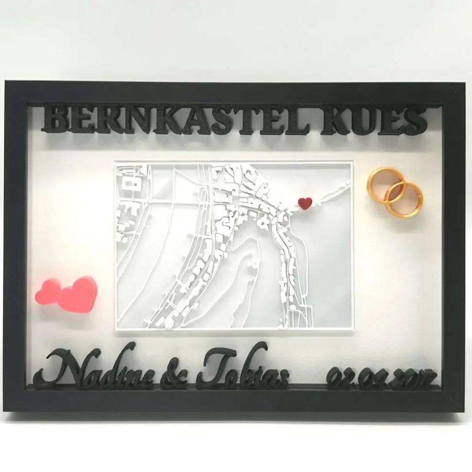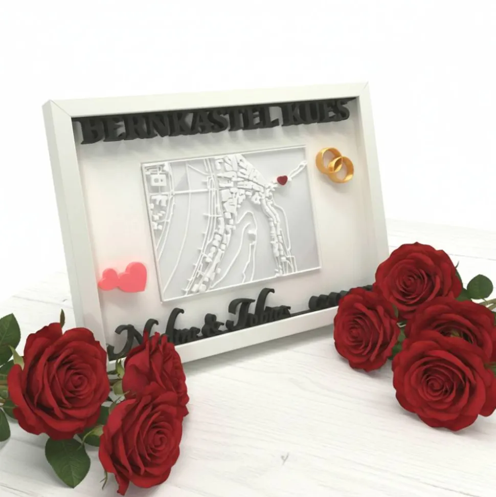 Personalisierte 3D-Stadtkarte im Bilderrahmen – individuelles Geschenk zur Hochzeit oder zum Jahrestag